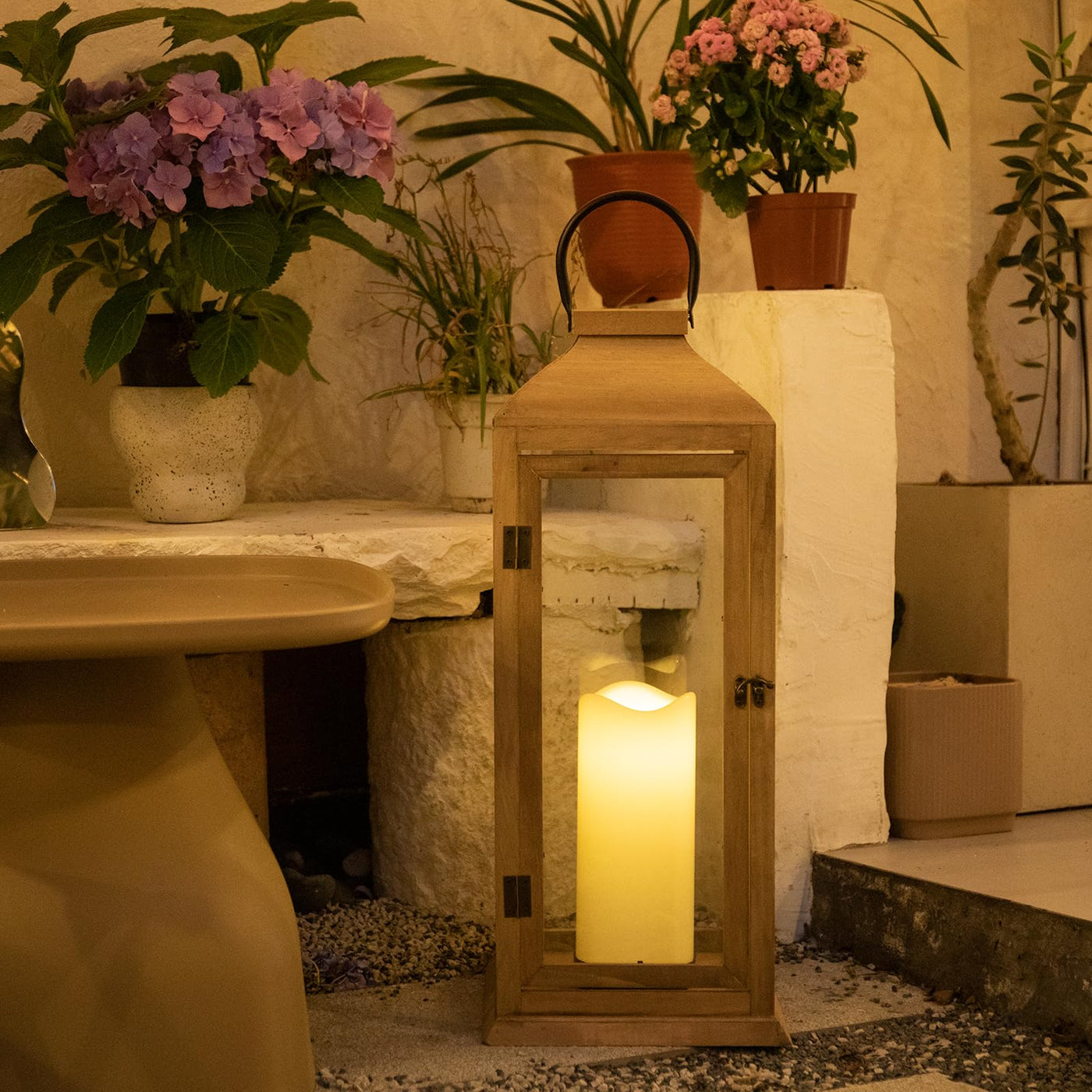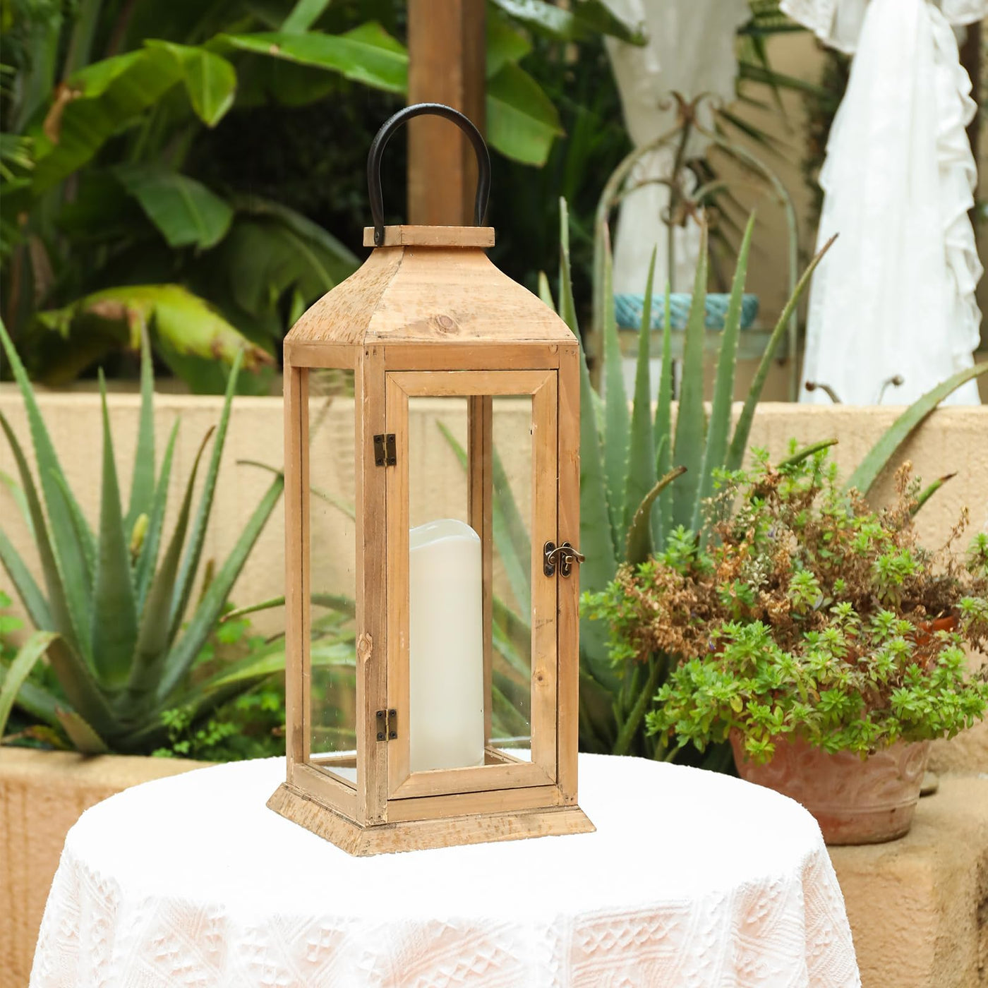 ?Farmhouse Design? Painted by hand of New Zealand pine with four-sided clear tempered glass panes, this candle lantern features the roof in vintage style. Great for holiday decorating or all year long, the possibilities are endless! | ?Functional Details?This decorative candle lantern is equipped with led flameless candles, which is convenient for you to use directly. There is a sturdy handle on the top for easy access and hanging. Each lantern features a minimalist latch design that is both aesthetically pleasing and functional. | ?A Great Decoration for Your Home? This decorative candle lanterns will spice up your tabletop, shelf, stairs, pathway, wall, patio, or porch. Use this lantern indoors or outdoors. The combination of New Zealand pine wood and glass creates a sophisticated piece. | ?Perfect Size? The distressed lantern measures approx 7.8inch x 7.8inch x 22.5inch. Easily fit a 3.3 x 7.8 pillar candle and create a warm inviting glow anywhere in your home. | ?Unpacking?Our popular jumbo lantern set now comes with tempered glass and extra thick foam packing to further reduce the breakage during transit. (Fragile product, please exercise care when unpacking).
