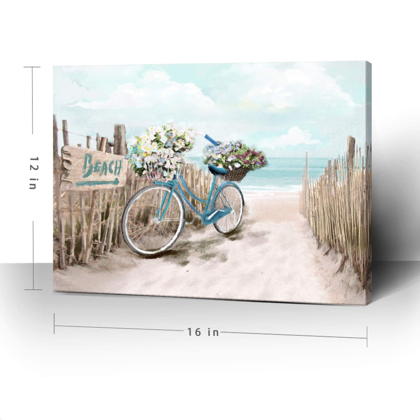 Beach Canvas Wall Art For Bathroom Ocean Pictures Seaside Bicycle Canvas Print Seascape Painting Framed Teal Aqua Blue Calming S