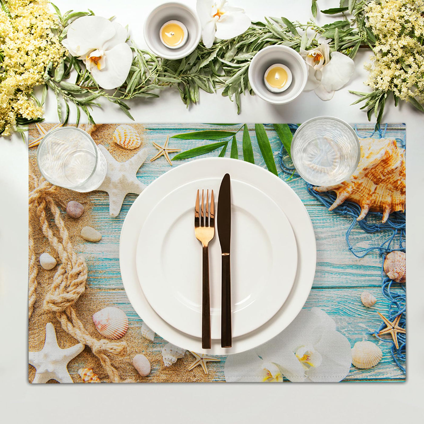 - Q: What are the dimensions of the Beach Placemats? A: Each placemat measures 12x18 inches (45cm x 30cm).