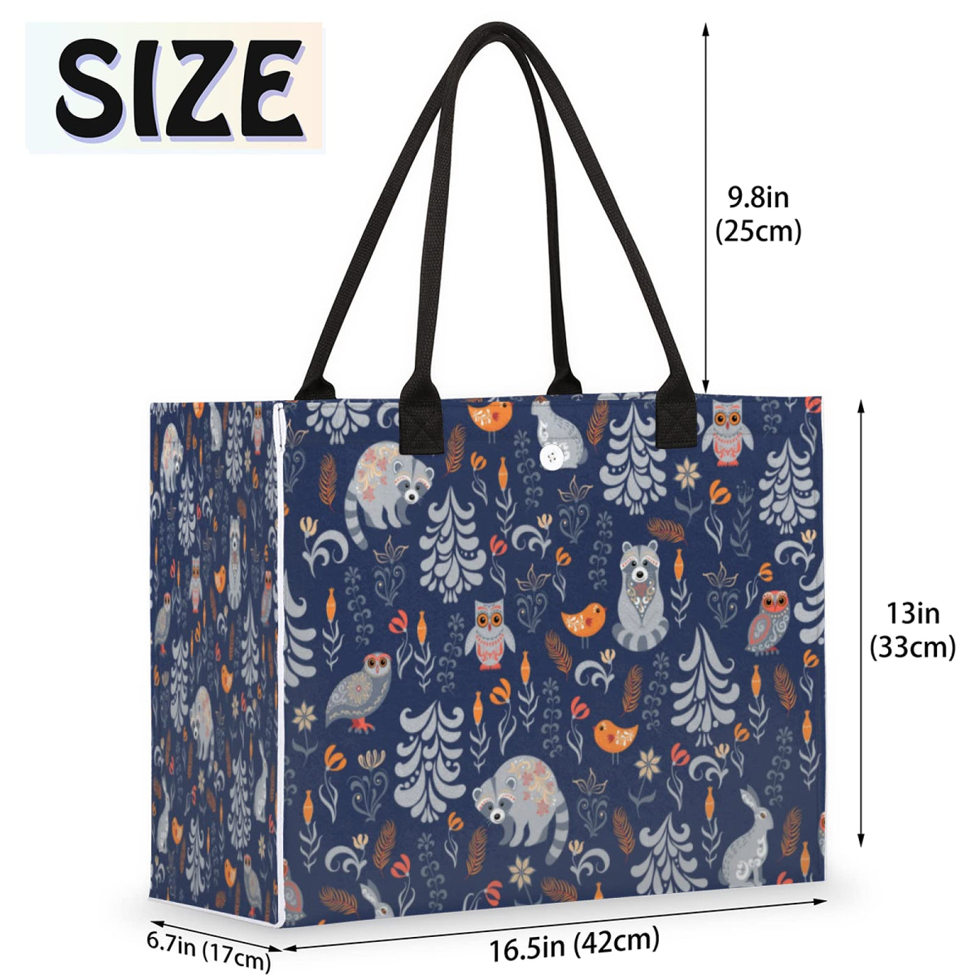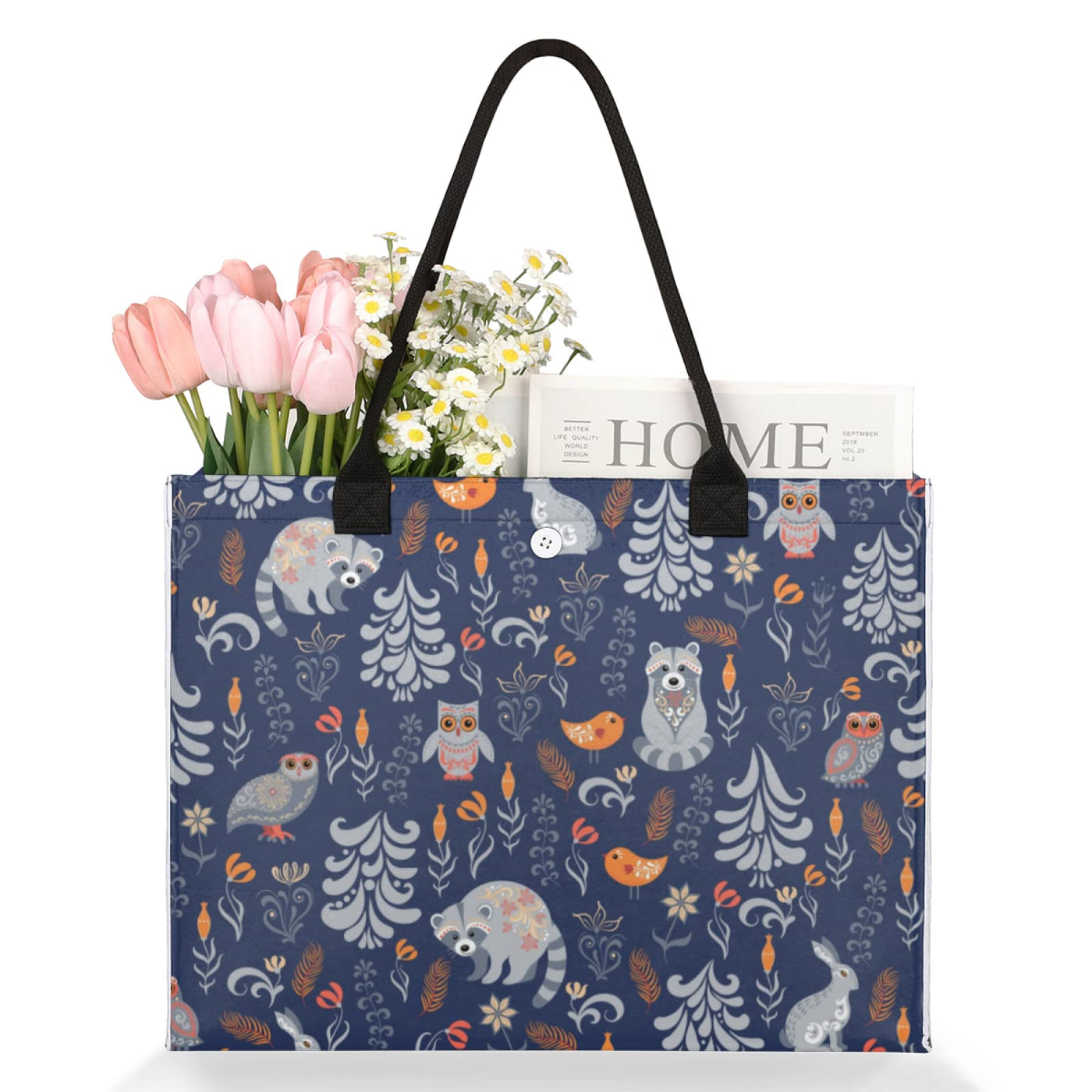 Beach Tote Bag Autumn Forest Animal Bird Raccoon Owl Rabbit Large Travel Bag Utility Tote Bag Women Shoulder Bag Reusable Grocer