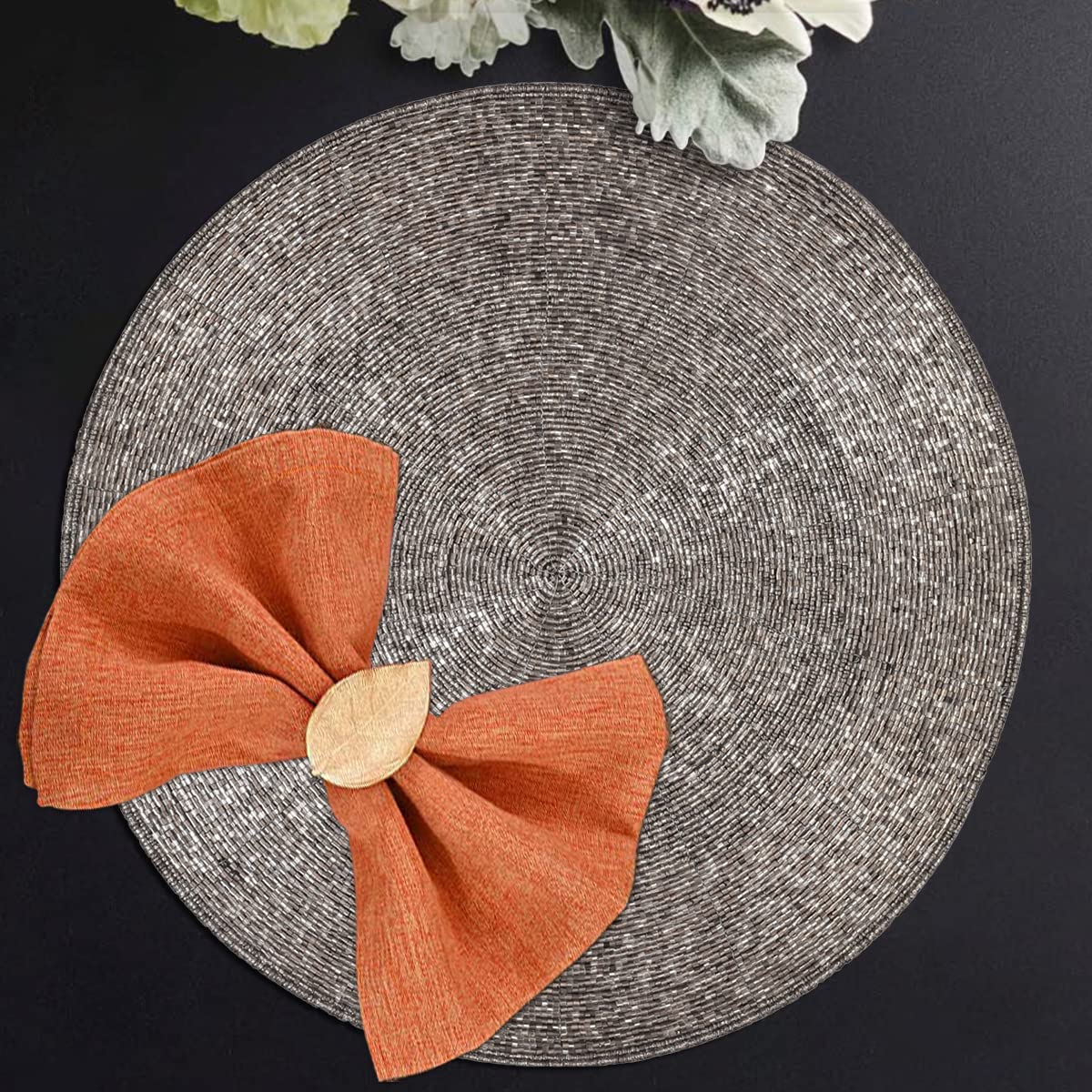 - Q: What materials are used in the placemats? A: The placemats are made with high-quality fabric backing and embellished with glass beads.