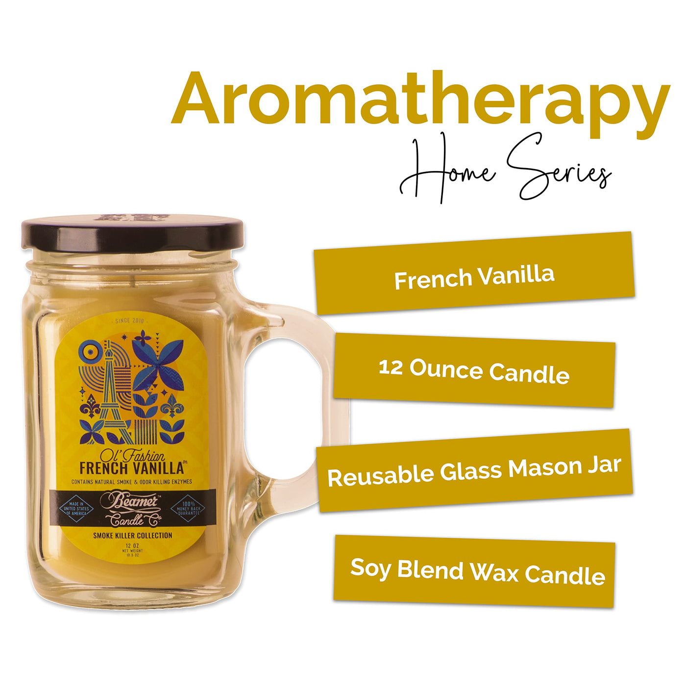 Beamer Candle Co. - French Vanilla Candle - Rich Creamy Vanilla Scent - Odor Eliminating - High Fragrance - Large 12oz Mason Jar