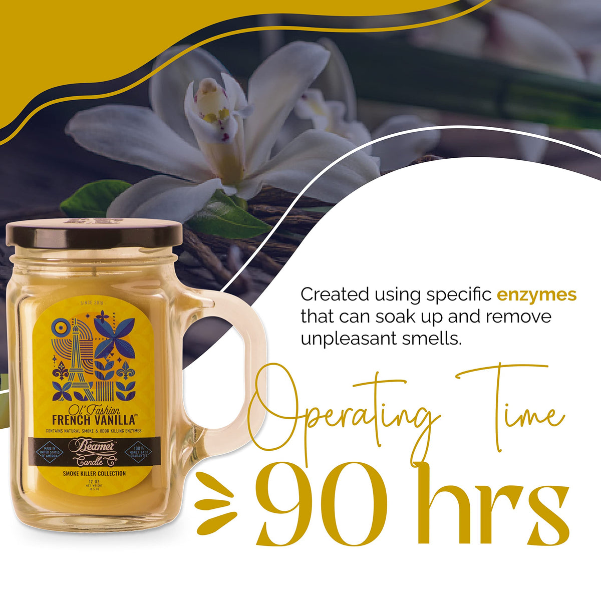- Q: What is the scent profile of the Beamer Candle Co. French Vanilla Candle? A: The Beamer Candle Co. French Vanilla Candle features a sweet, rich vanilla scent with creamy, buttery undertones.