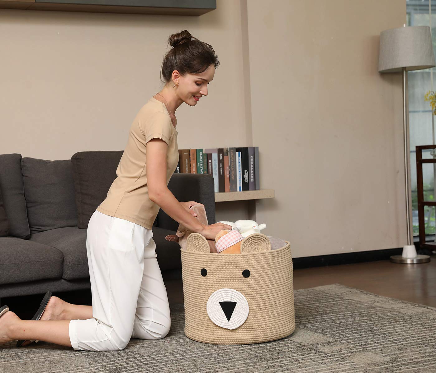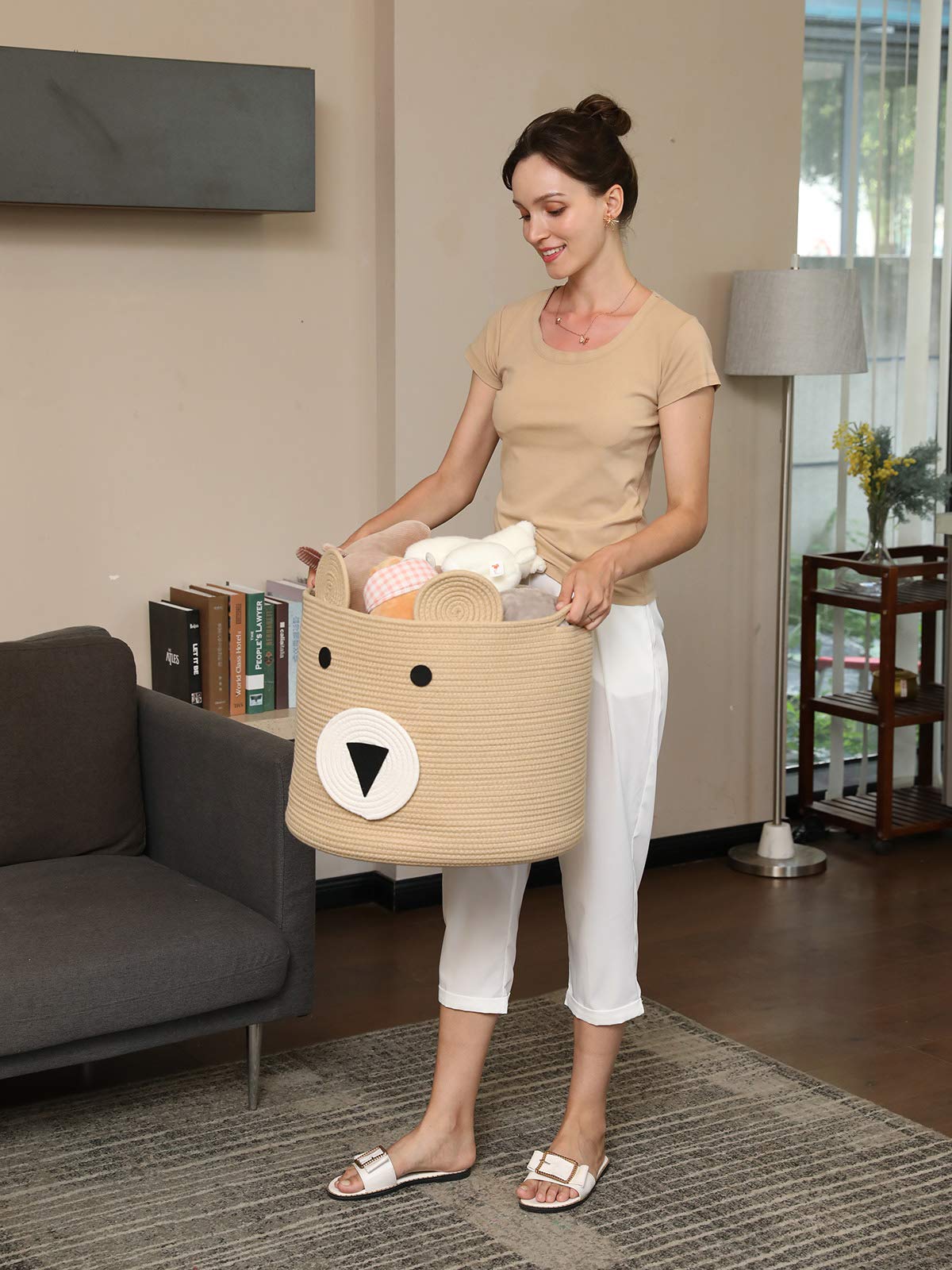 Bear Basket, Animal Basket, Large Cotton Rope Basket, Large Storage Basket, Woven Laundry Hamper, Cloth Storage Bin, For Clothes