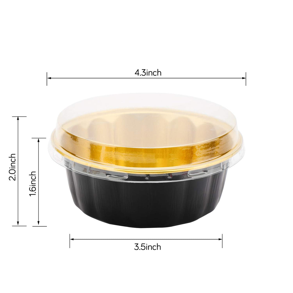 Beasea Disposable Ramekins 8Oz, 100 Pack Black Gold Aluminum Foil Cups With Lids, Disposable Creme Brulee Muffin Cupcake Baking