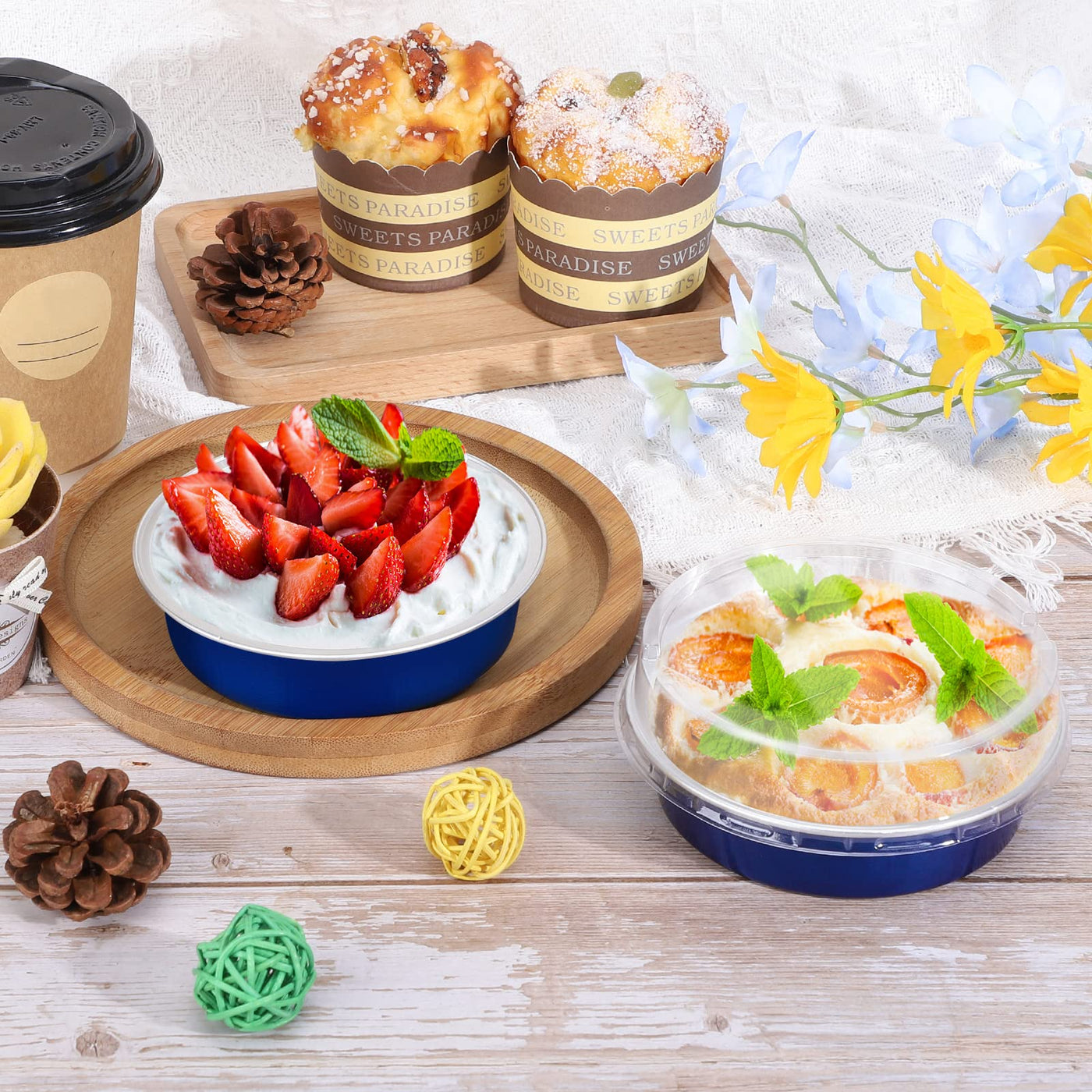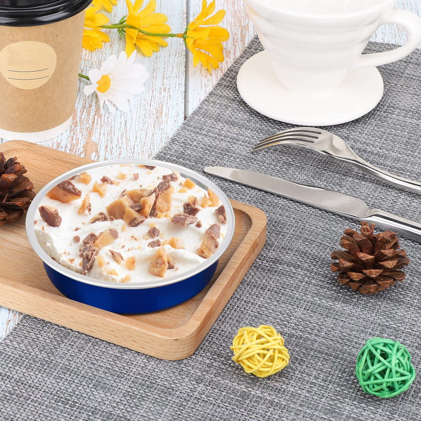 Beasea Mini Tart Pan 20 Pack With Lids, 4 Inch 8Oz Jewelry Blue Disposable Aluminum Baking Foil Tins Small Round Container For I