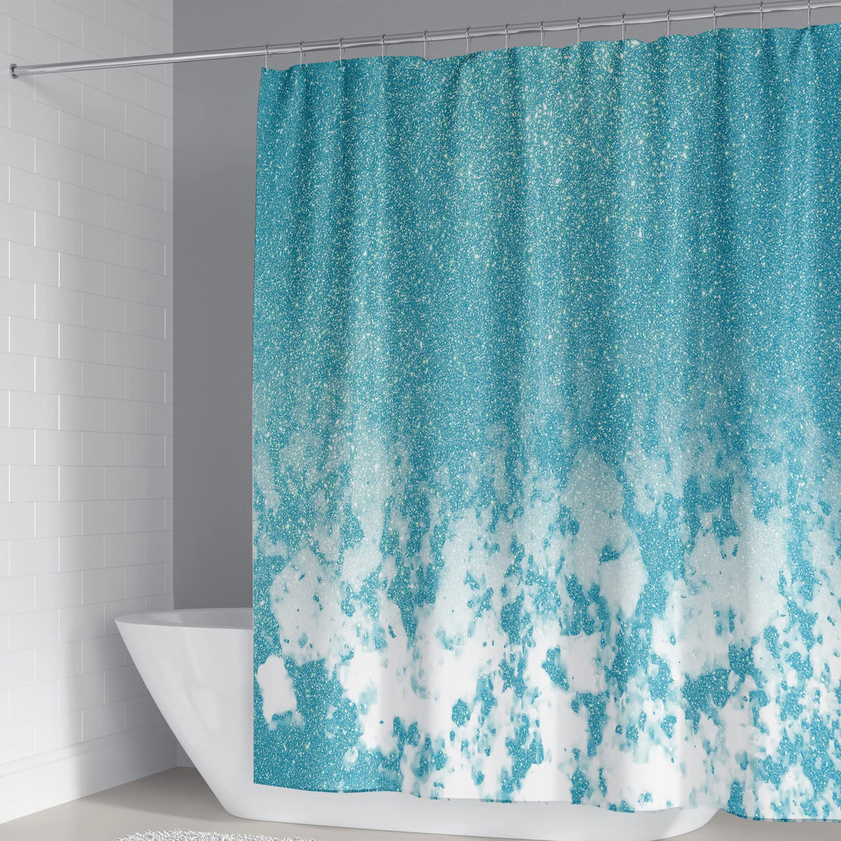 • Q: Is the design of the shower curtain fade-resistant? A: Yes, the 3D glitter marble pattern is created using high-definition digital printing technology, ensuring it remains clear and vibrant without fading.