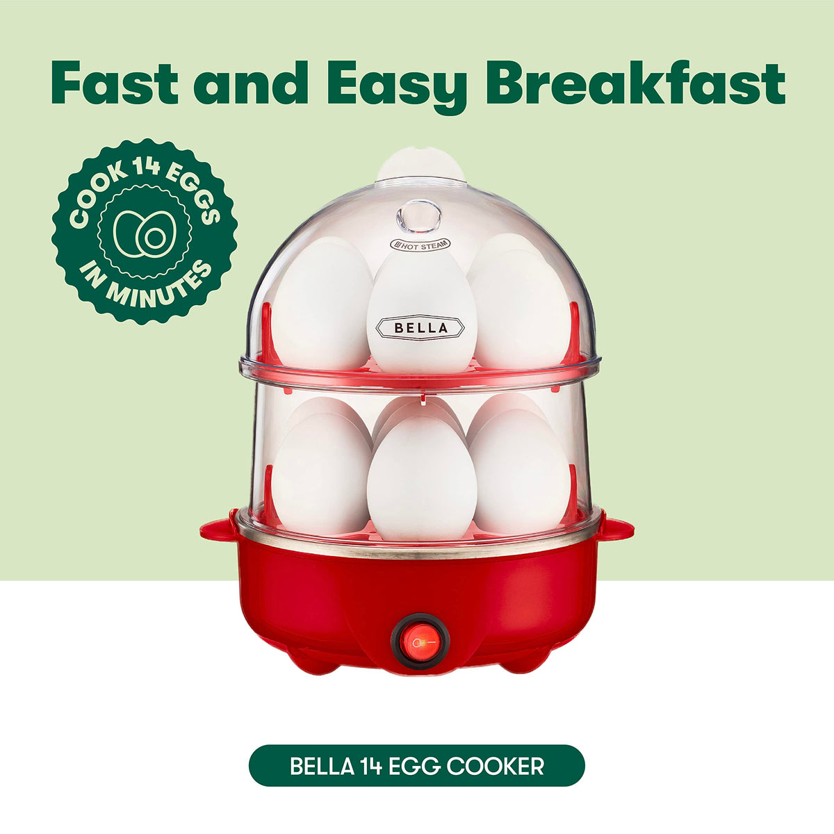 - Q: How many eggs can the BELLA Rapid Electric Egg Cooker cook at once? A: The BELLA Rapid Electric Egg Cooker can cook up to 14 eggs at once.