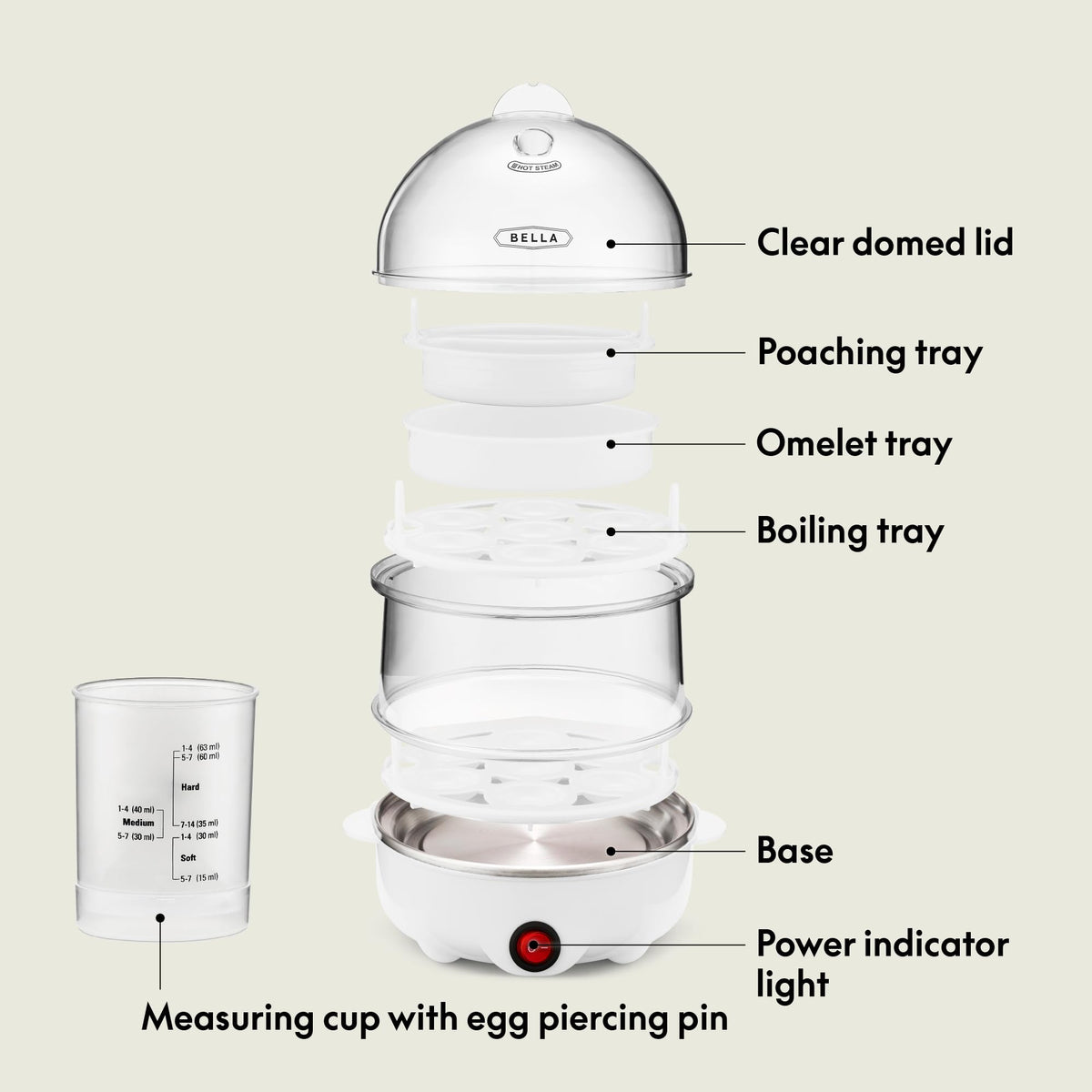 Bella Rapid Electric Egg Cooker And Poacher With Auto Shut Off For Omelet, Soft, Medium And Hard Boiled Eggs, 14 Egg Capacity Tr