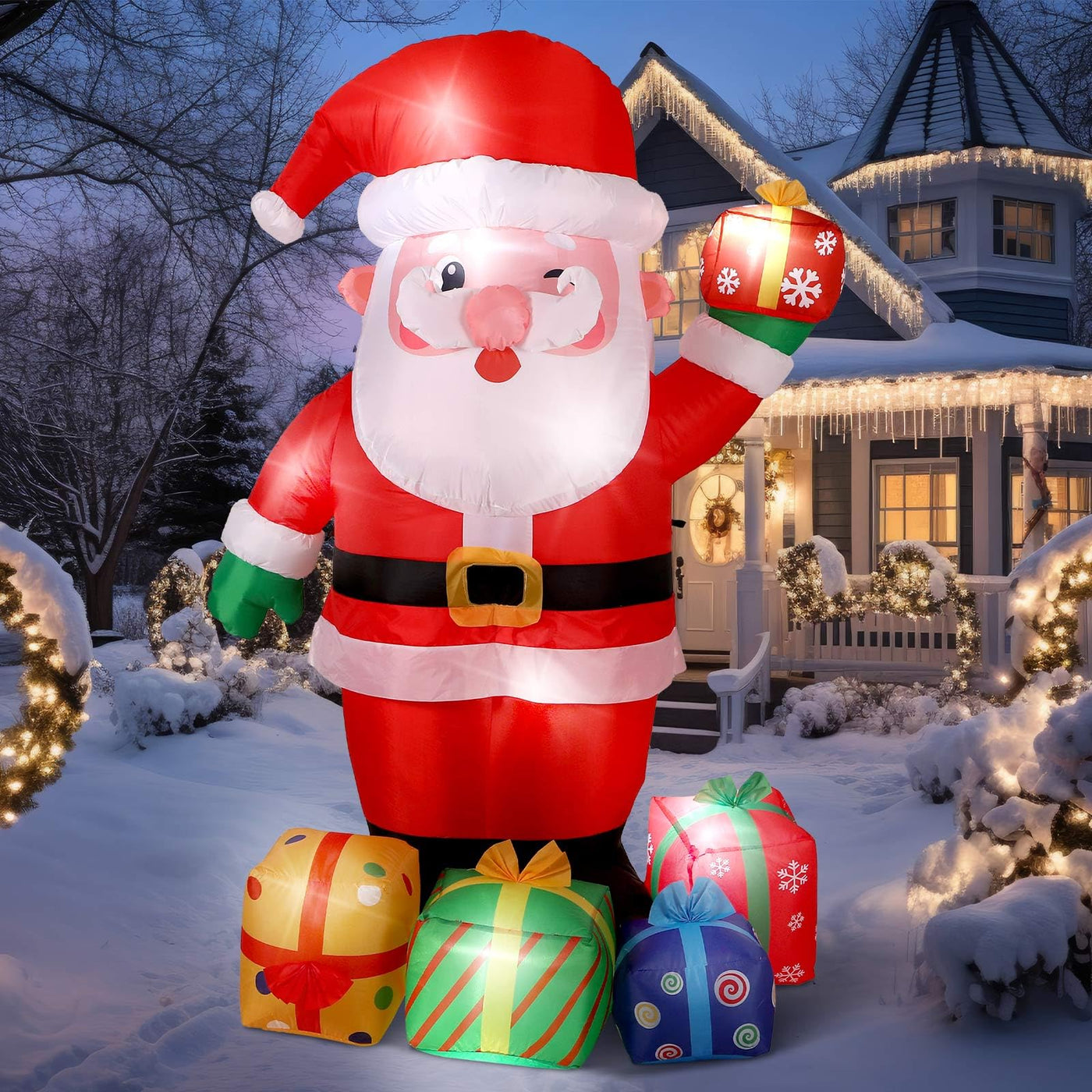 Bencailor 4.7 FT Christmas Inflatable Santa Claus Outdoor Decorations Blow up Standing Santa and Gift Boxes with Built in LED Li