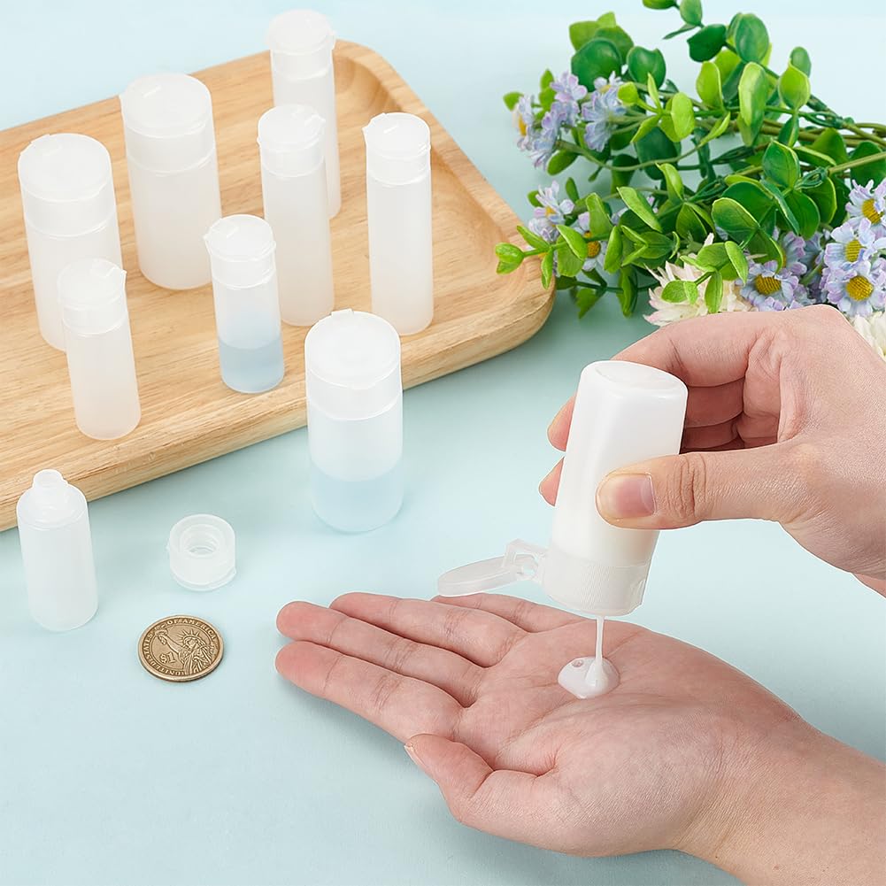 Benecreat 10Pcs 12Ml/18Ml/30Ml Travel Bottles Plastic Toiletry Bottles Flip Cap Squeeze Sample Bottle Containers For Makeup Loti
