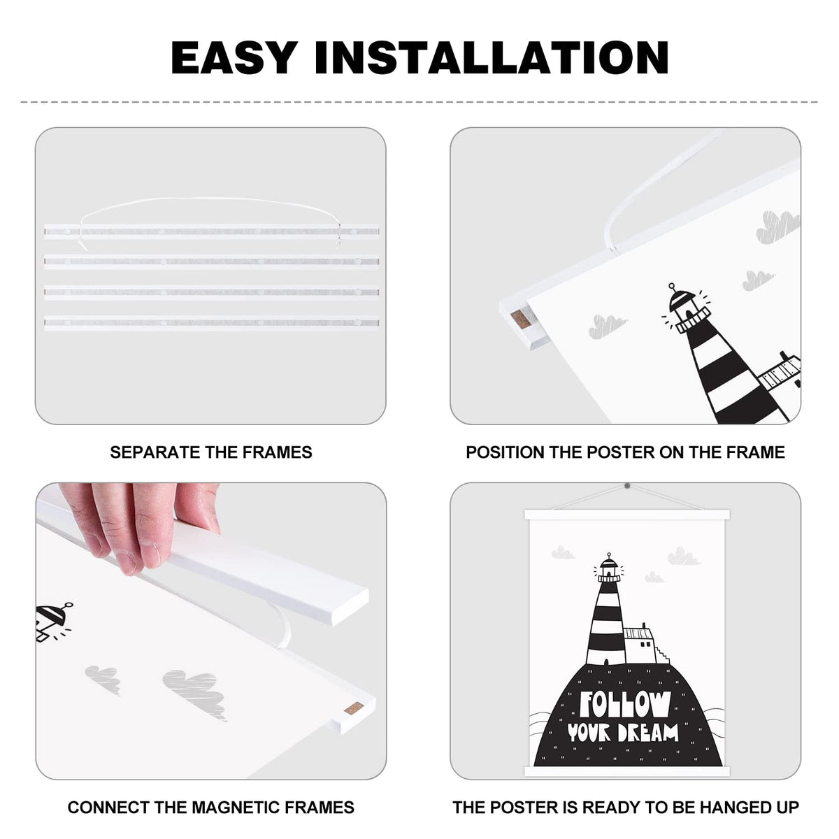 - Q: Can I hang thick posters or canvases with this frame? A: While the magnetic hangers are powerful, thicker posters or canvases may not adhere securely due to their weight, so it's best suited for standard thickness prints.