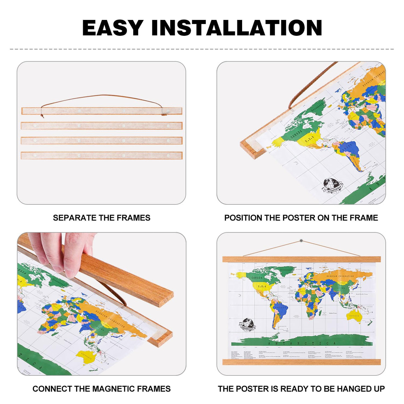 • Q: Can I use this frame for artwork other than posters? A: Yes, the frame can also be used for hanging maps, prints, and even tapestries, as long as they fit within the width specifications.