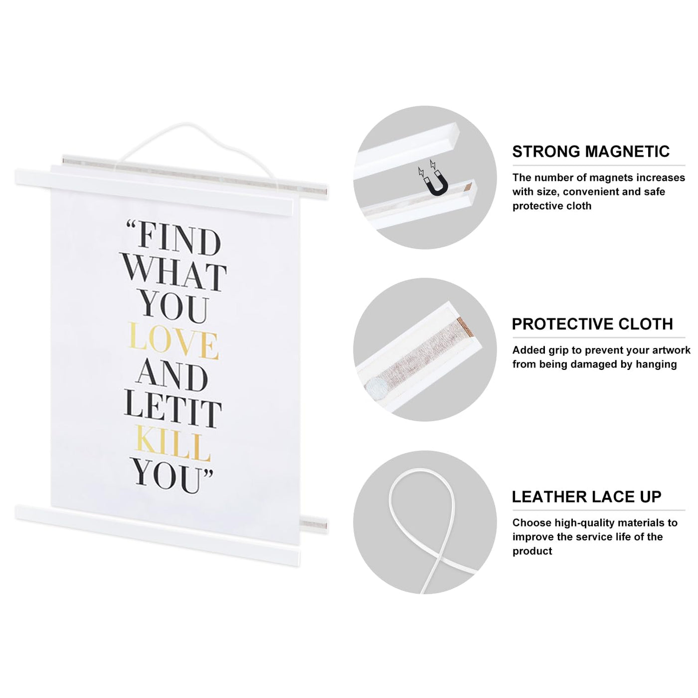 - Q: How strong are the magnets in the poster hanger? A: The magnets are powerful and strong enough to securely hold different kinds of prints and artwork.