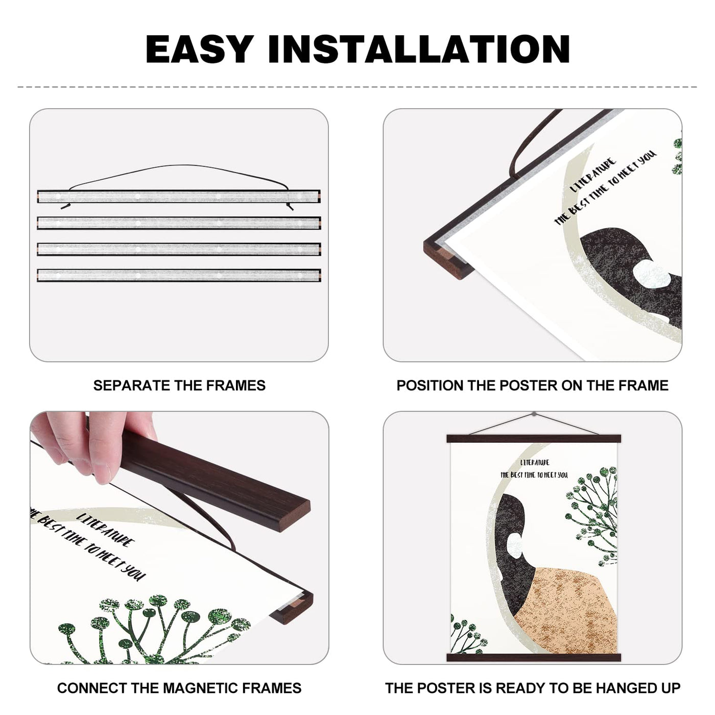 - Q: What sizes of posters can this frame accommodate? A: This magnetic poster hanger is designed for 9-inch wide posters, compatible with lengths such as 9x12, 9x13, and 9x17.