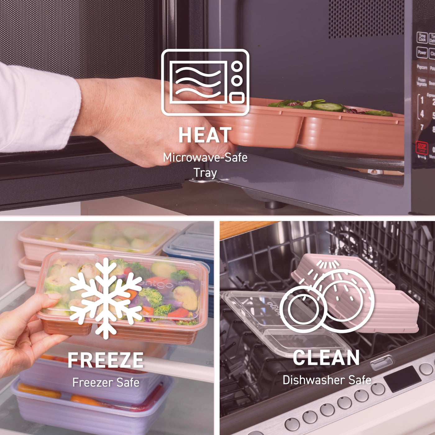 - Q: How many compartments do the trays have? A: Each tray has two compartments, allowing you to separate different food items easily.