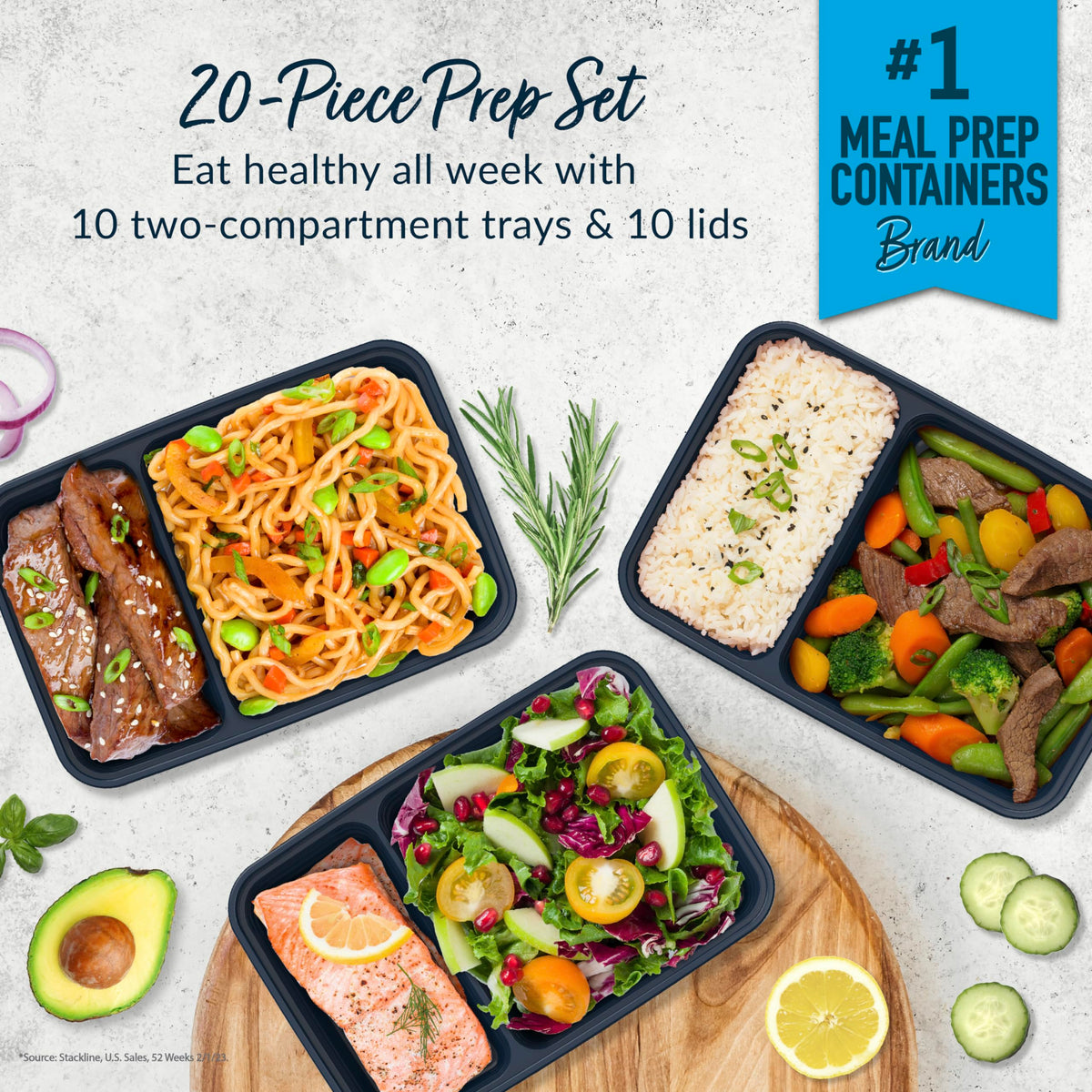Bentgo 20-Piece Lightweight, Durable, Reusable Bpa-Free 2-Compartment Containers - Microwave, Freezer, Dishwasher Safe - Navy Bl
