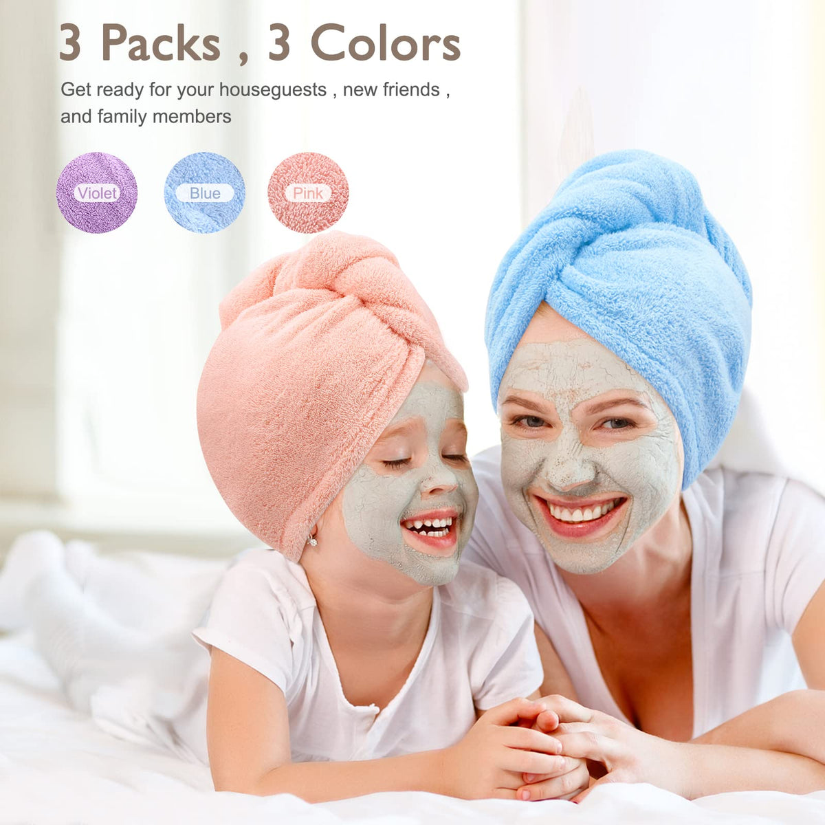 BEoffer Microfiber Hair Towel, 3 Packs Hair Turbans for Women, Men,Kids, Quick Dry Hair Wrap Towels for Curly,Long, Curly Hair A