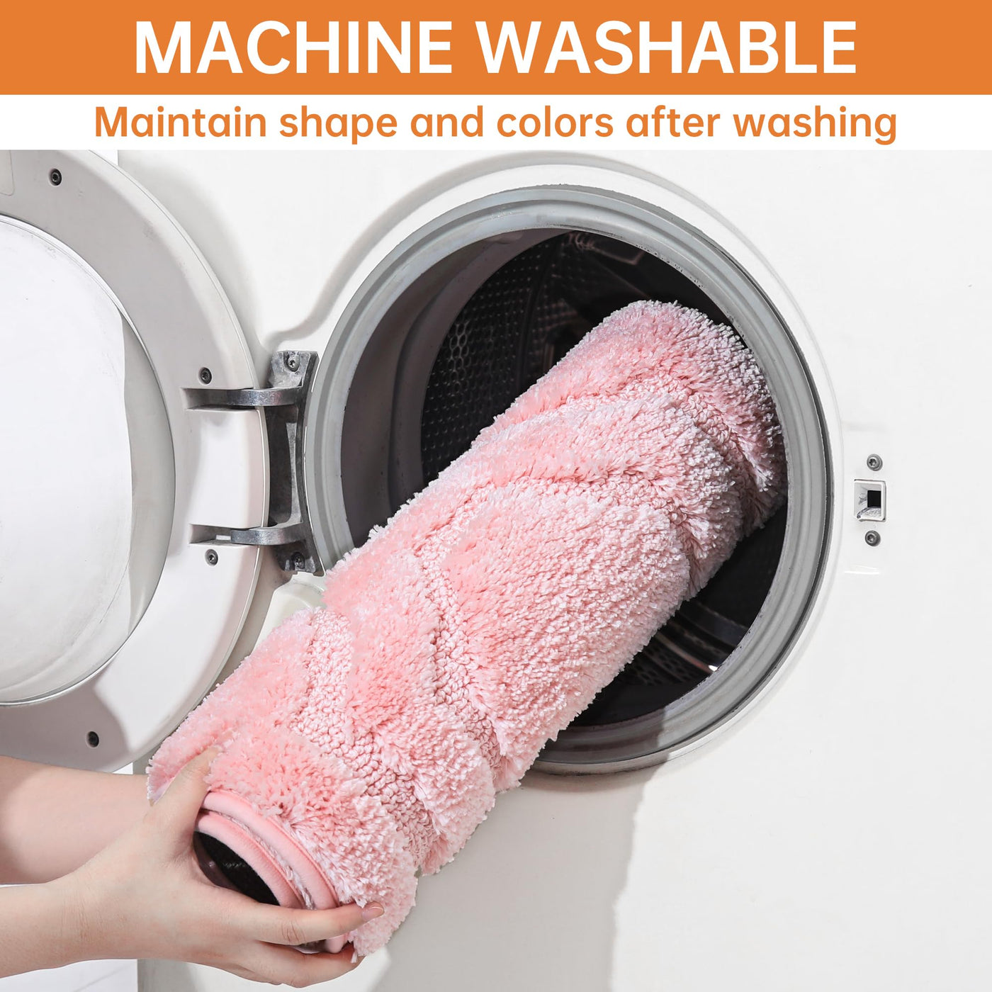 Beqhause Bathroom-Rugs-Non-Slip-Bath-Mats For Bathroom Soft And Absorbent Polyester Microfiber Pink Bath Mat Machine Washable Sh