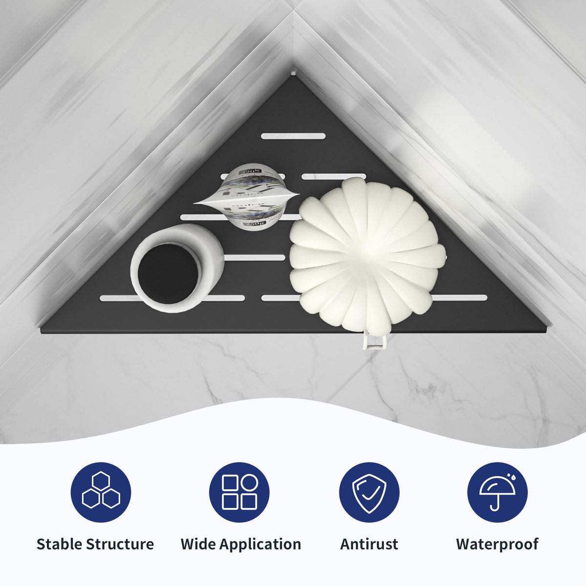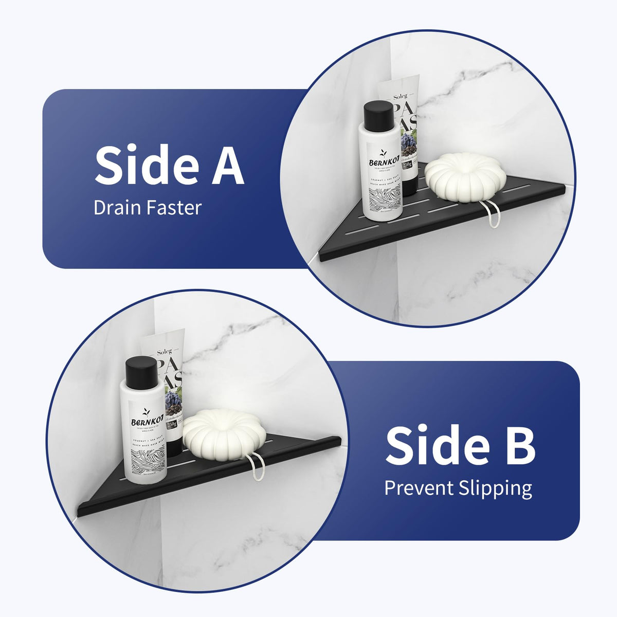 - Q: Does the shelf provide good drainage for toiletries? A: Yes, Side A of the shelf is designed to provide a larger area for holding toiletries and offers better drainage.