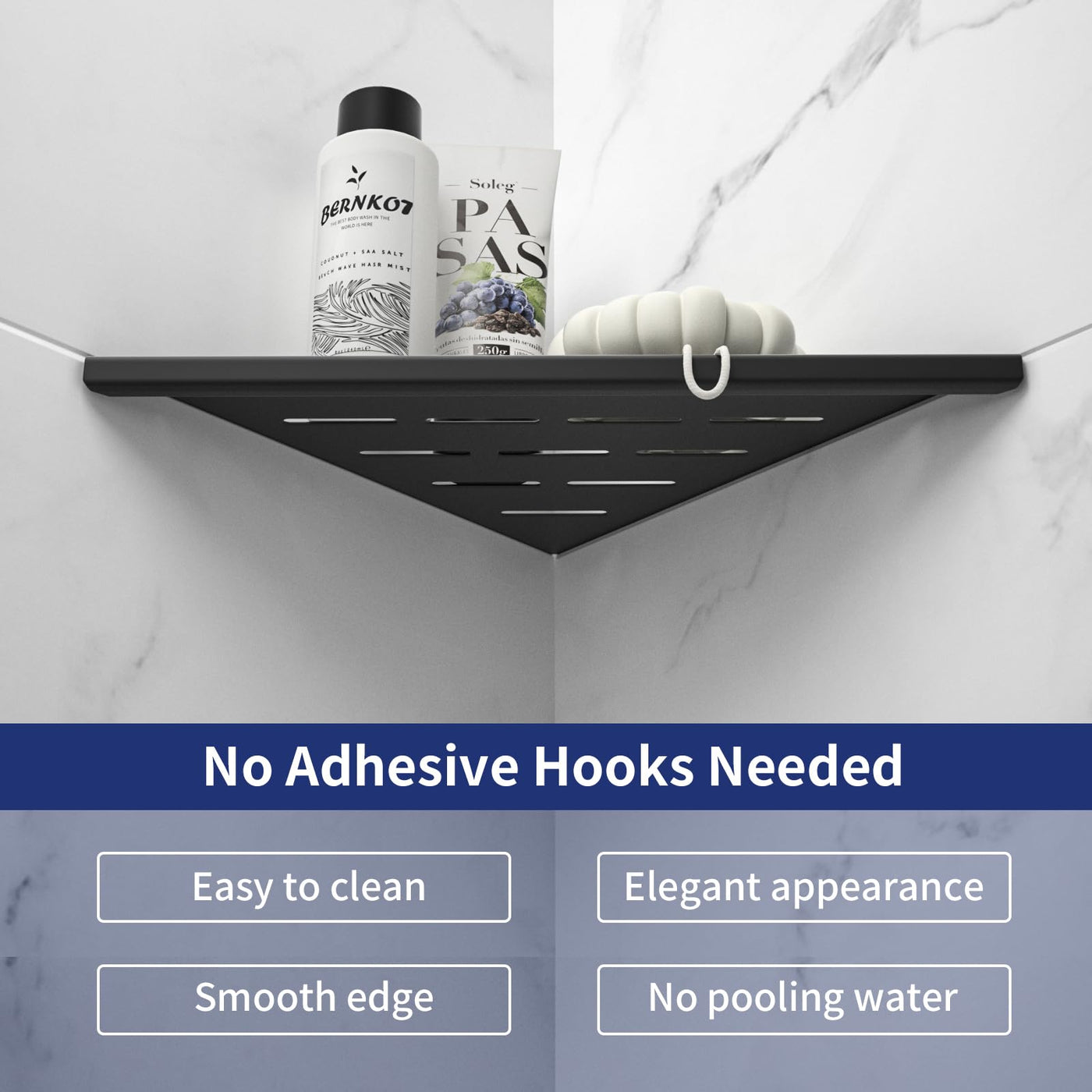 - Q: What colors are available for the shower shelf? A: The Bernkot Corner Shower Shelf is available in two colors, including black, to match your bathroom decor.