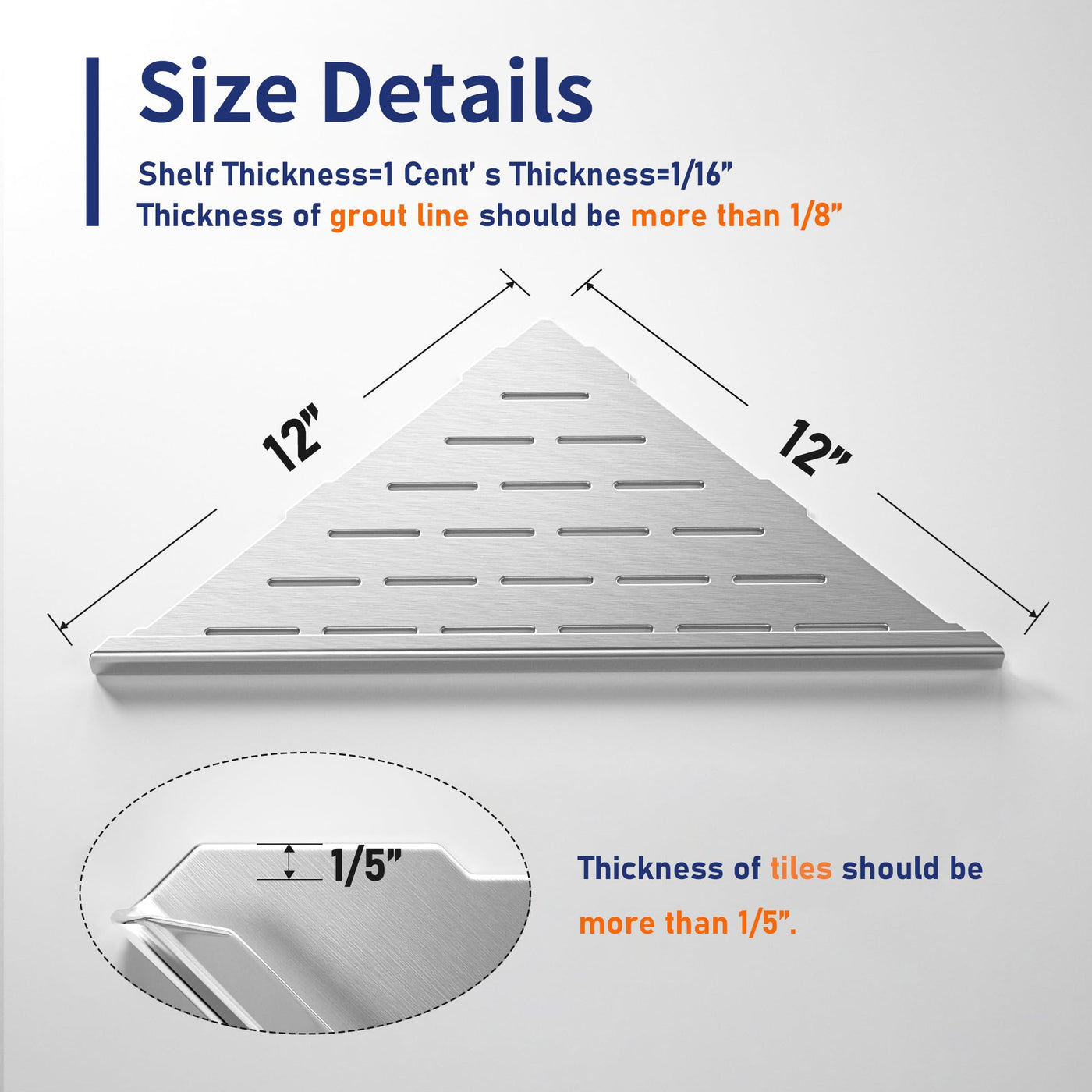 - Q: What thickness of tile is required for installation? A: The tile should be thicker than 1/5'' to accommodate the wall recessed part of the shelf.
