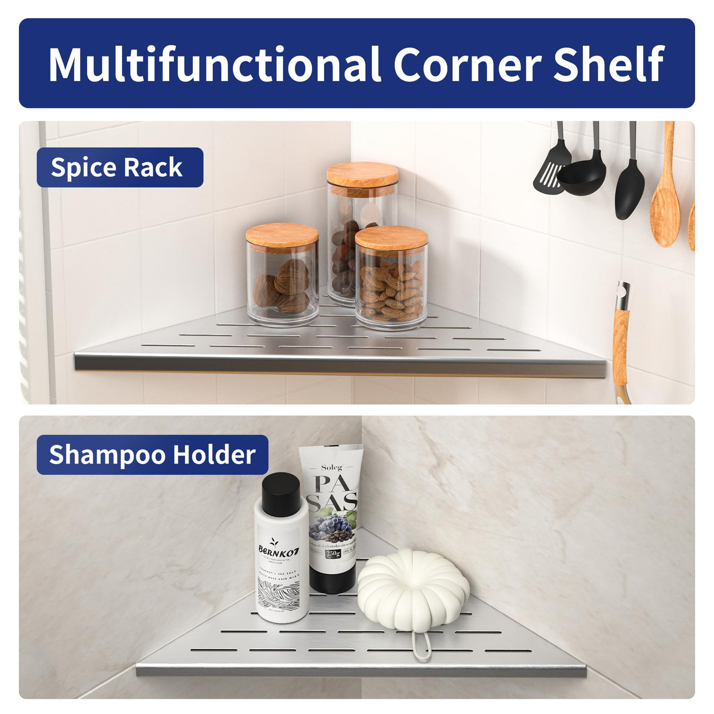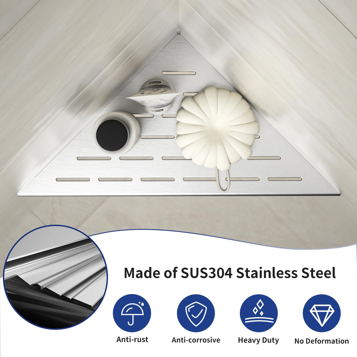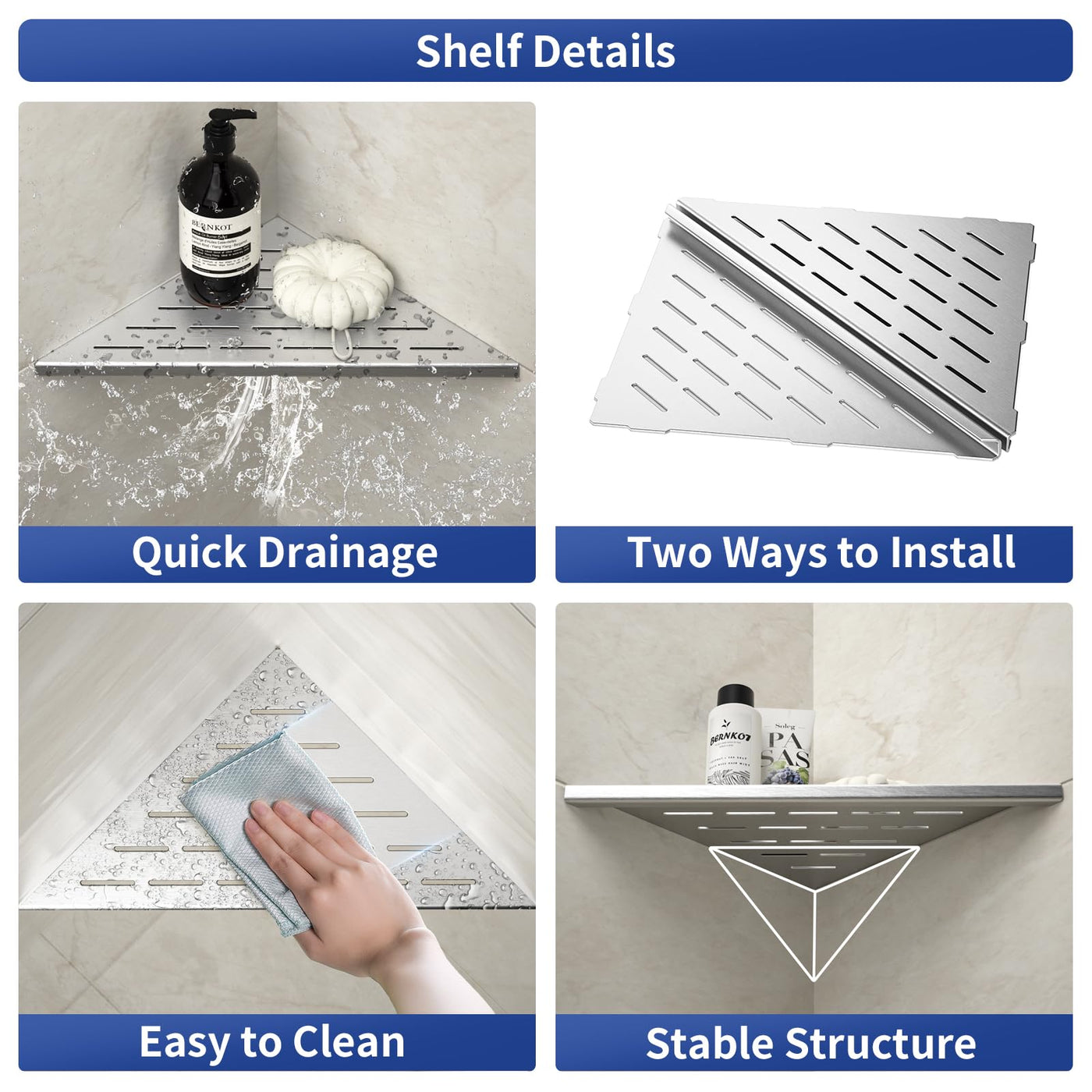 - Q: What materials are the Bernkot Corner Shower Shelves made from? A: The Bernkot Corner Shower Shelves are made from ASTM standard 304 stainless steel, which offers protection against corrosion, scratches, and rust.