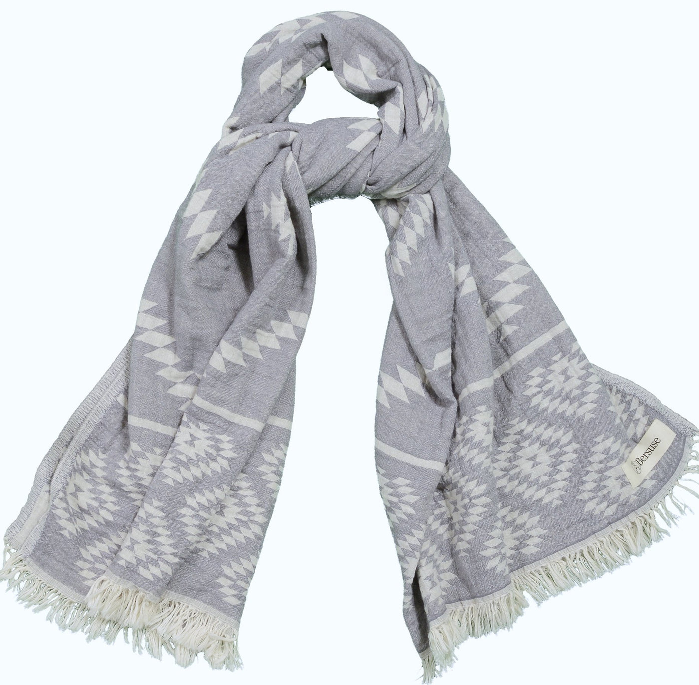 Bersuse 100% Cotton Teotihuacan Turkish Towel Beach Towel Bath Towel Dual Layer Peshtemal Beach Blanket Beach Essentials - 37X70