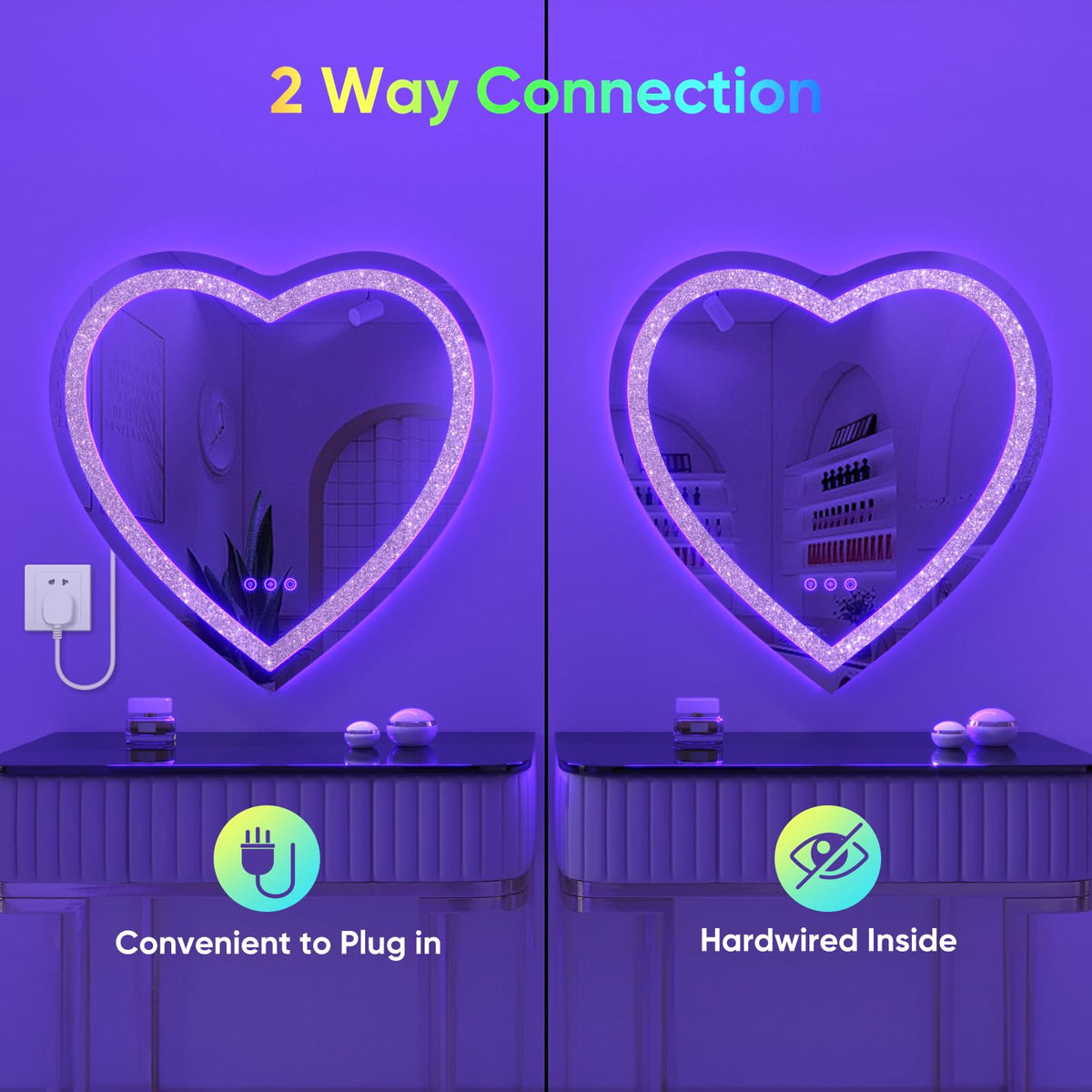 • Q: How do I install the BesMirror Heart Shaped Mirror? A: Installation is simple with the included Z-brackets, allowing you to easily hang the mirror. You can plug it in or hardwire it to your wall switch.