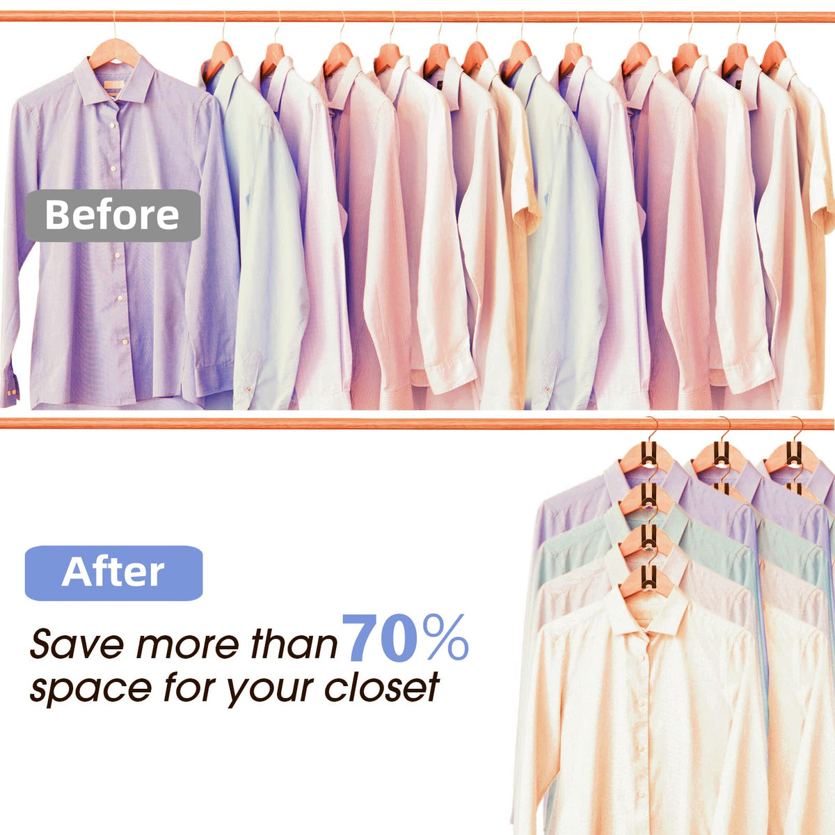 - Q: How do these hooks help save space in my closet? A: These hooks allow you to connect multiple hangers together, which can save at least 50% of available storage space in your closet.