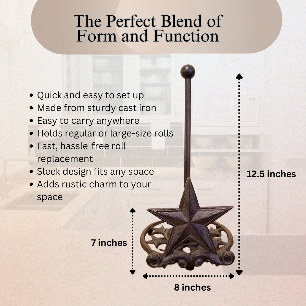 Bestgiftever Metal Star Country Rustic Paper Towel Holder - Freestanding Kitchen Countertop Decor For Farmhouse, And Western Sty