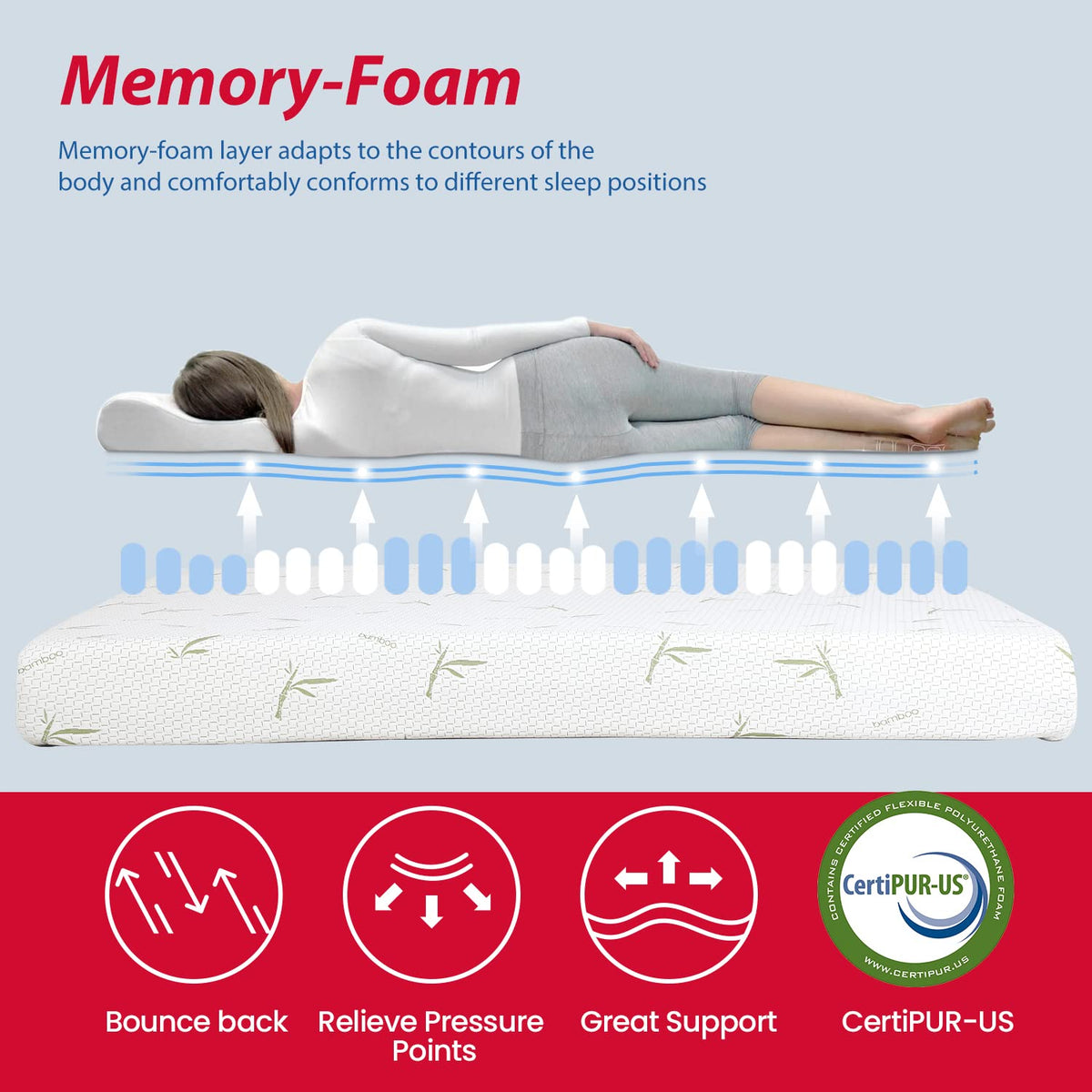 - Q: How does the gel memory foam help with sleep? A: The gel memory foam draws heat away from the body, offering a cooler sleep experience while contouring to individual body shapes to relieve pressure points.