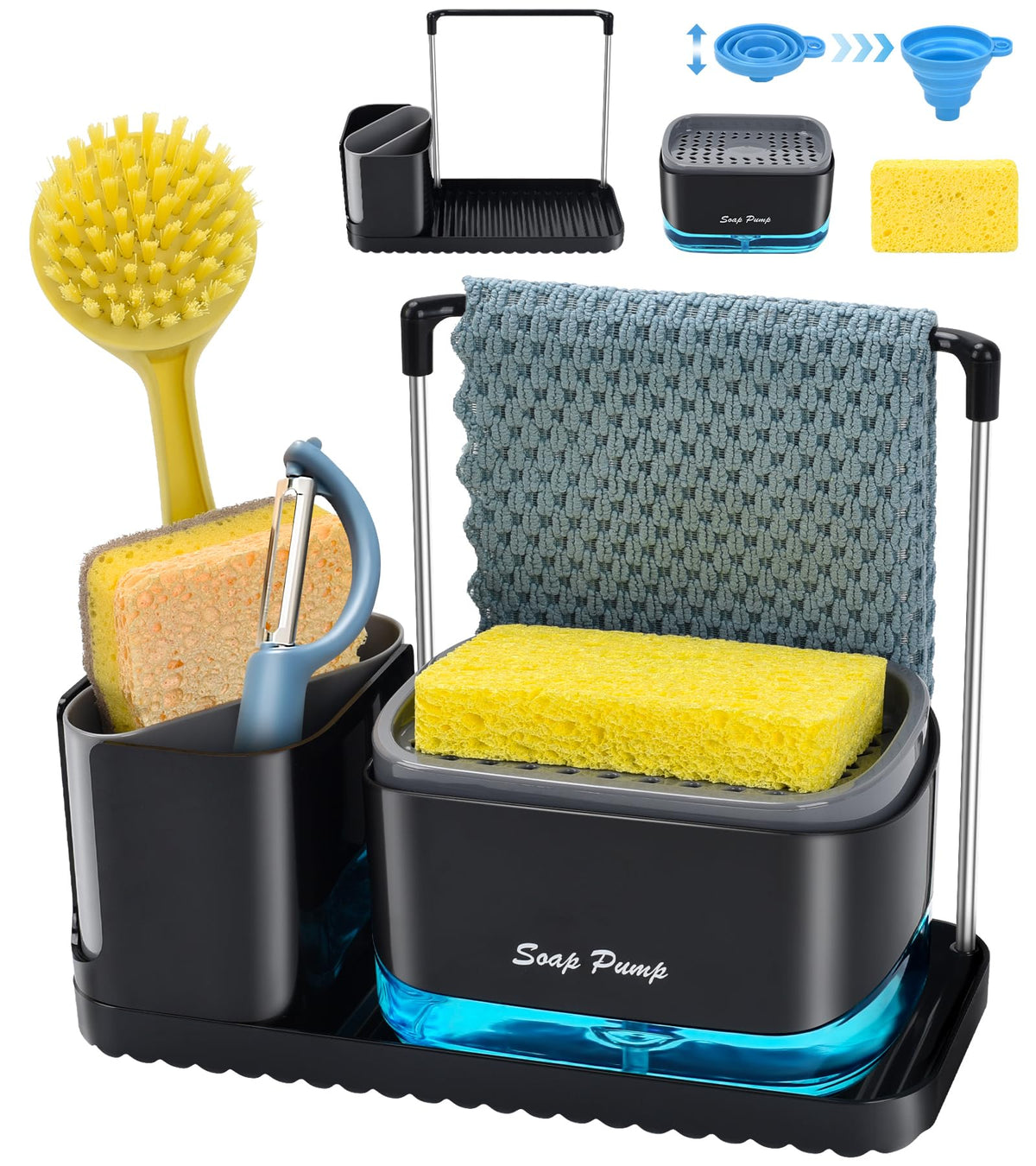 Bestseek Kitchen Soap Dispenser Set With Tray And Sponge Holder, Sink Caddy Organizer With Dishcloth And Dish Brush Holder, For