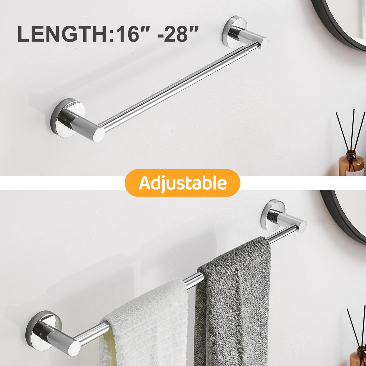 Besy Adjustable 15.9 To 28.6 Inch Single Bath Towel Bar Rack For Bathroom Accessories Sus304 Stainless Steel Towel Holder, Wall