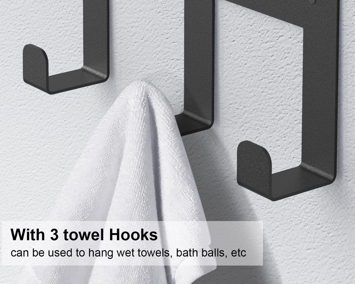 Bethom Towel Racks For Bathroom, Towel Rack With Shelf & 3 Hooks, Towel Storage Holders Wall For Rolled Bath Towels, Black