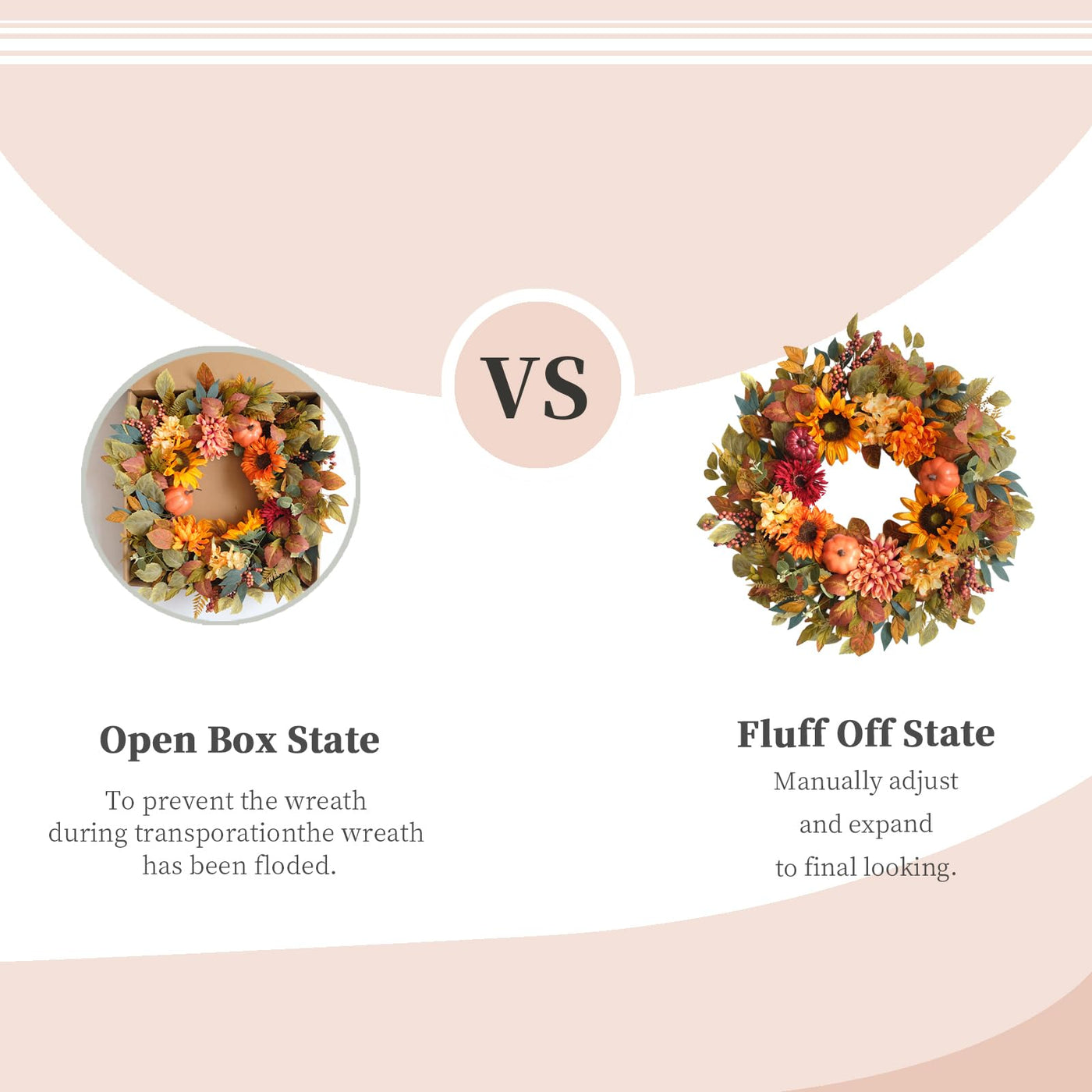 Bibelot 24 Inch Sunflower Pumpkin Fall Wreath for Front Door - Artificial Grapevine Harvest Decor with Dahlias & Hydrangeas, Tha