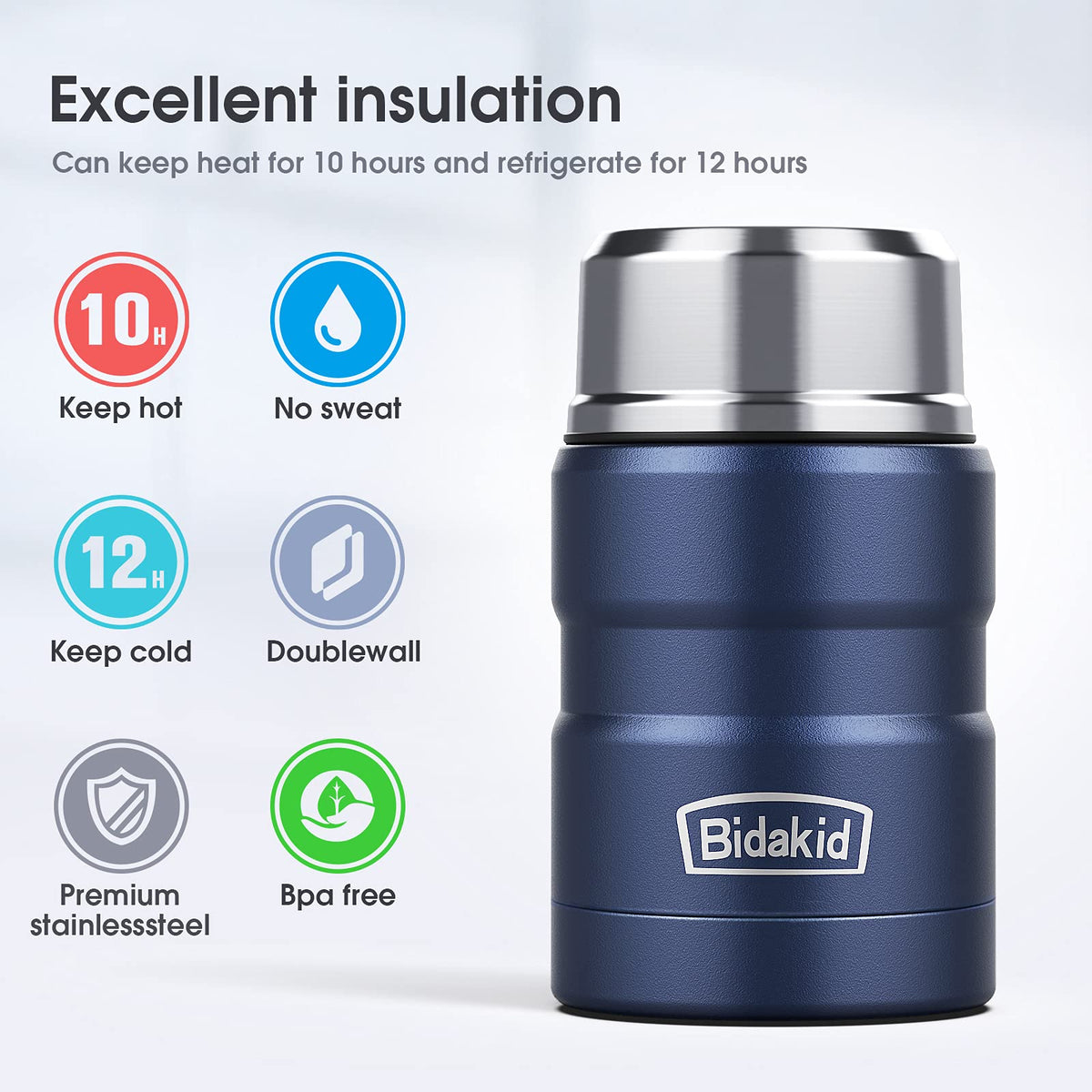 Bidakid Containers For Hot Food, 2 Pack Insulated Food Jar For Hot, Soup Vessels, Lunch Box Containers For Hot Cold Food With Ca