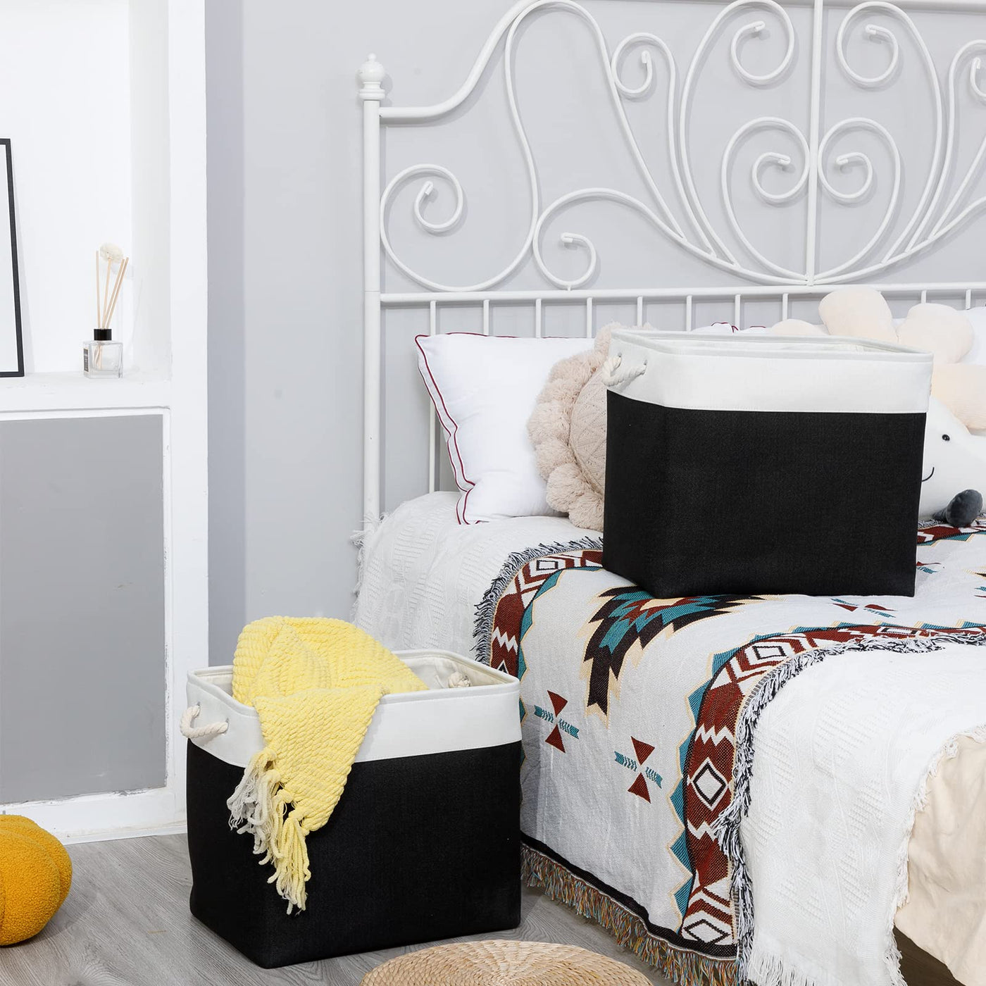 • Q: Are the baskets suitable for use in different rooms? A: Absolutely, these versatile baskets can be used in various rooms such as the living room, bedroom, bathroom, and playroom for a range of organizing needs.