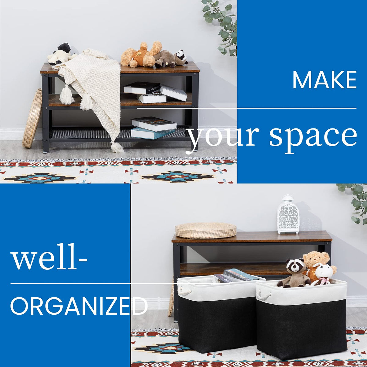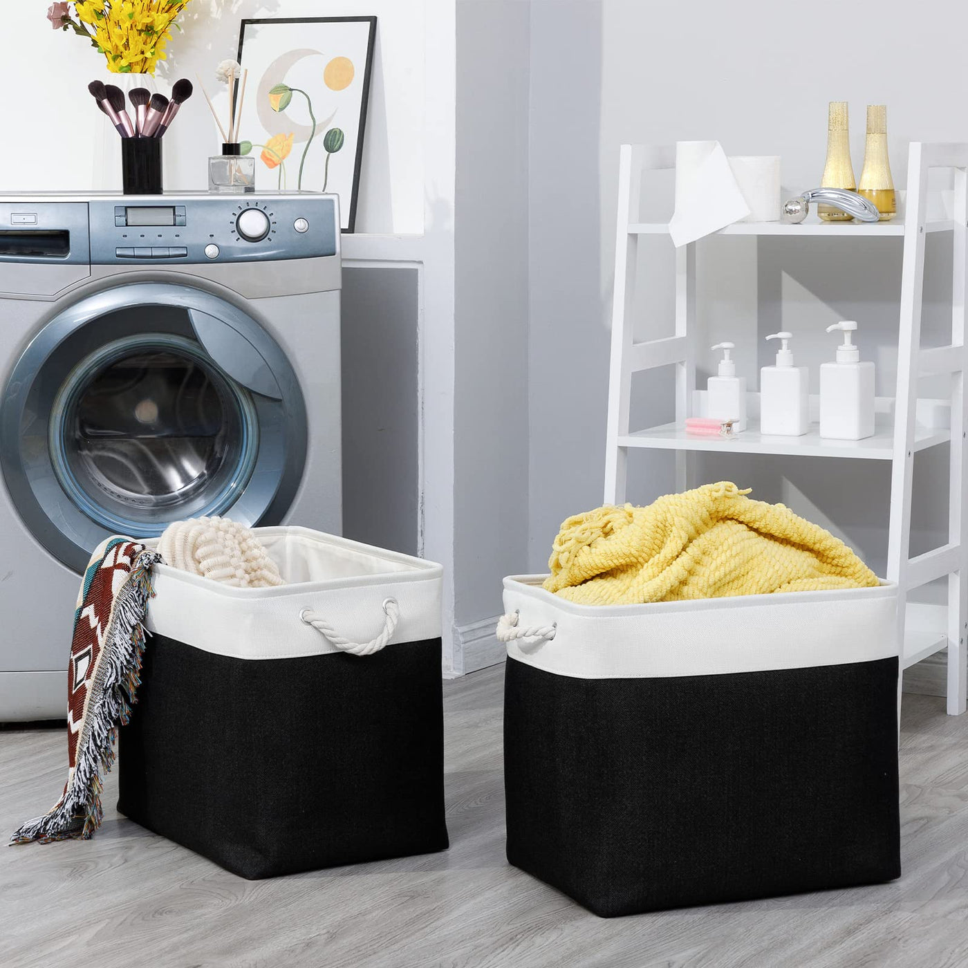 • Q: What types of items can I store in these baskets? A: You can store a variety of items including clothes, towels, blankets, pet toys, office supplies, magazines, and more, making them highly versatile for home organization.