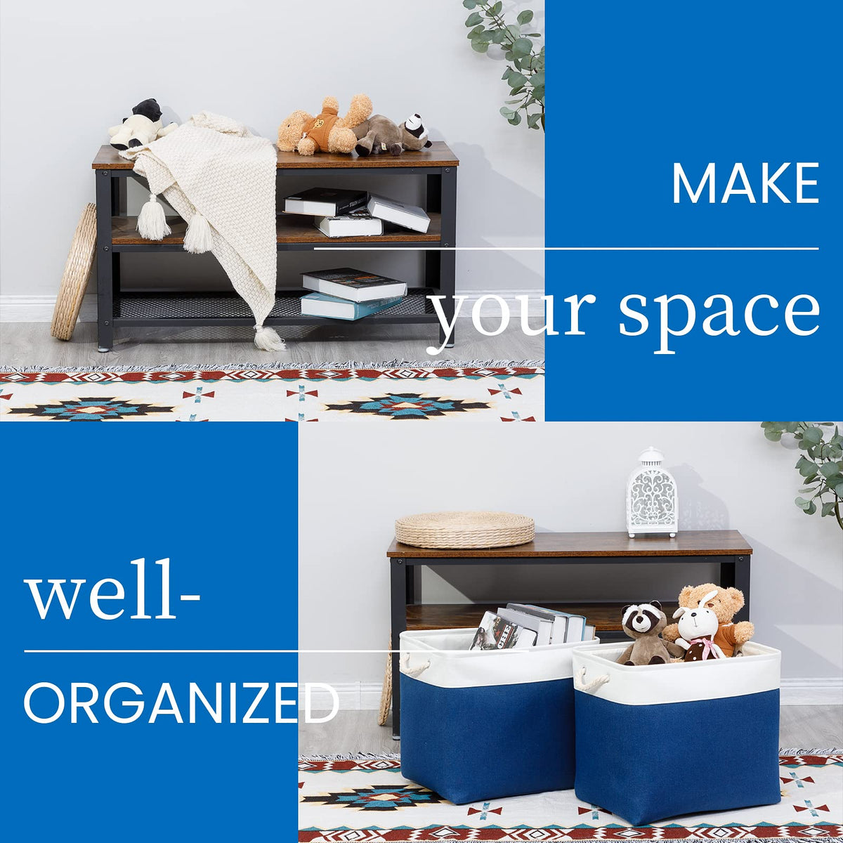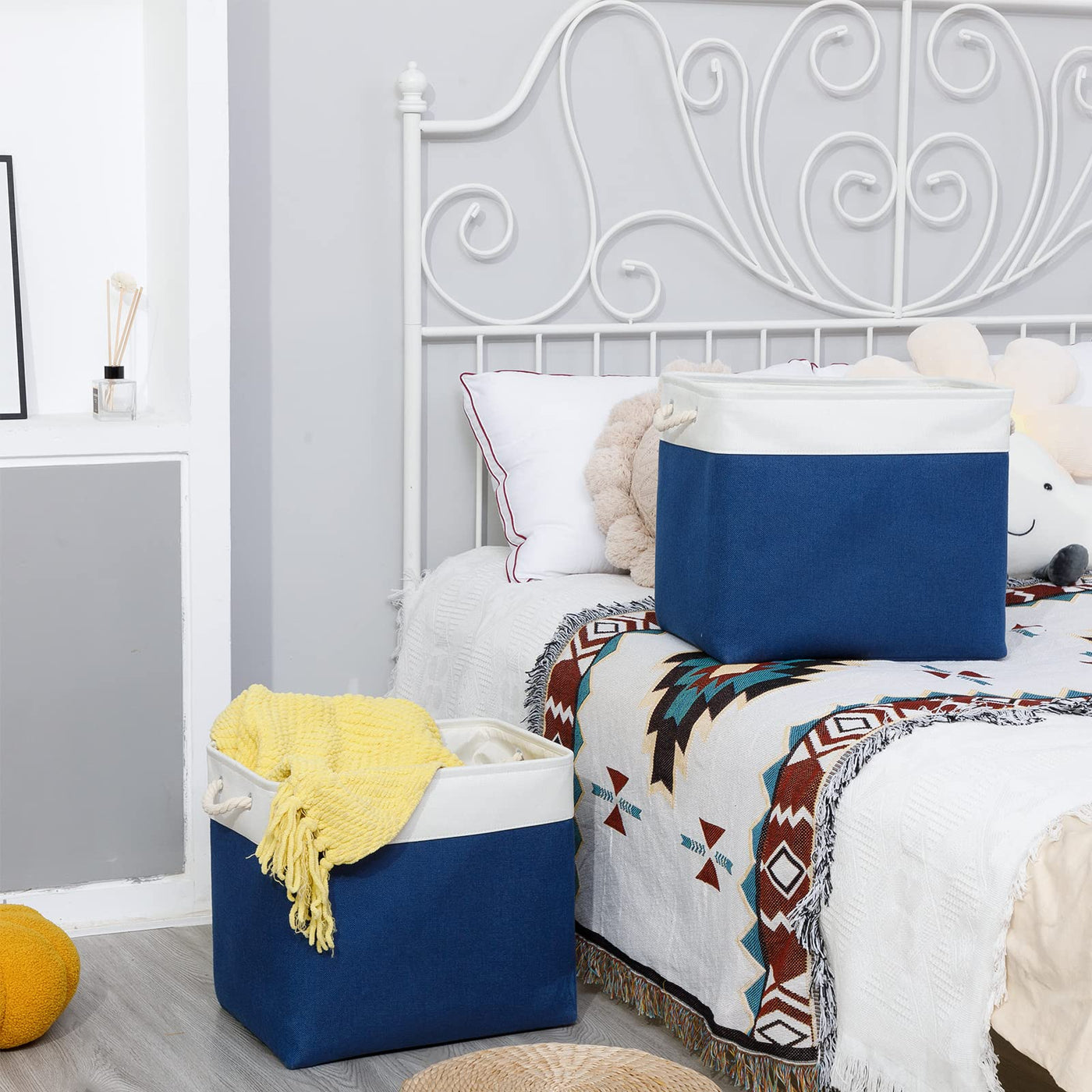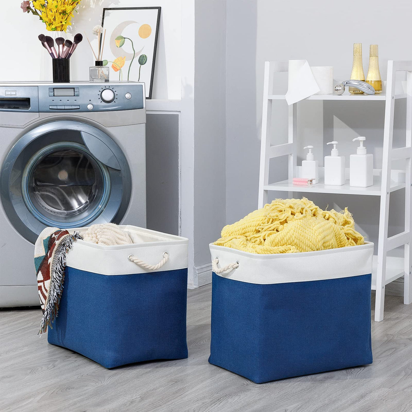 Bidtakay Large Baskets With Cotton Handles Set Of 2 Navy Blue Canvas Organization Bins 17X12X15 In Rectangular Baskets For Blank