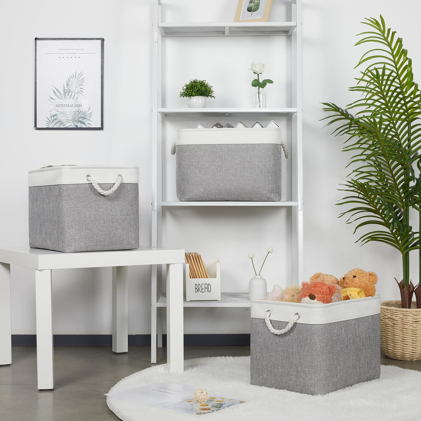 Bidtakay Large Storage Baskets For Organizing 3-Pack Fabric Closet Organizers Storage Bins With Handles 16X11.8X11.8 In Collapsi
