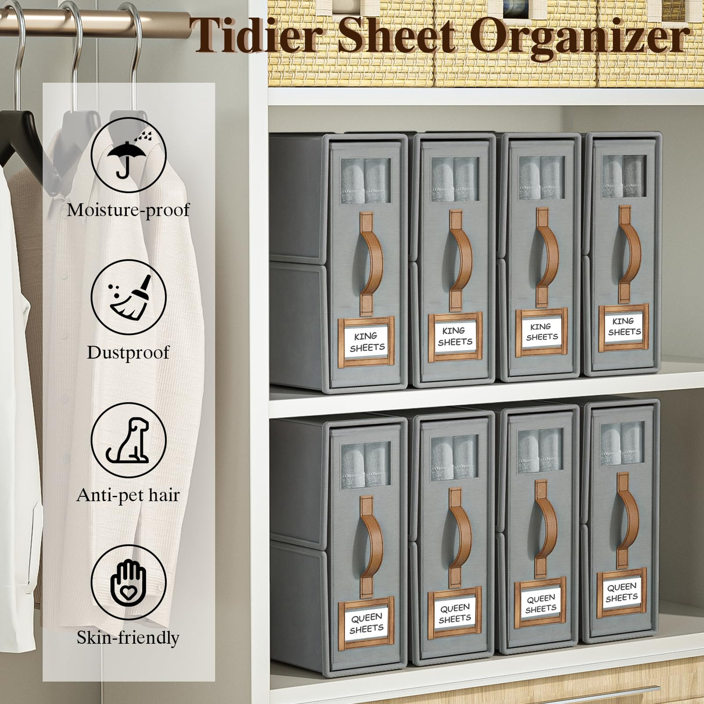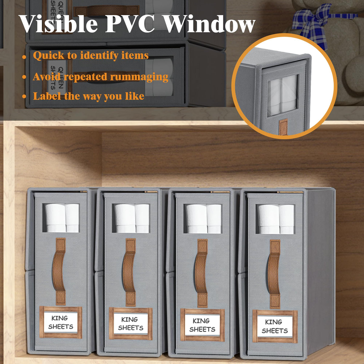 BigPonPon 4 Pack Foldable Bed Sheets Set Organizers and Storage(King & Queen Size),Linen Fabric Closet Organizers with Window,Fo