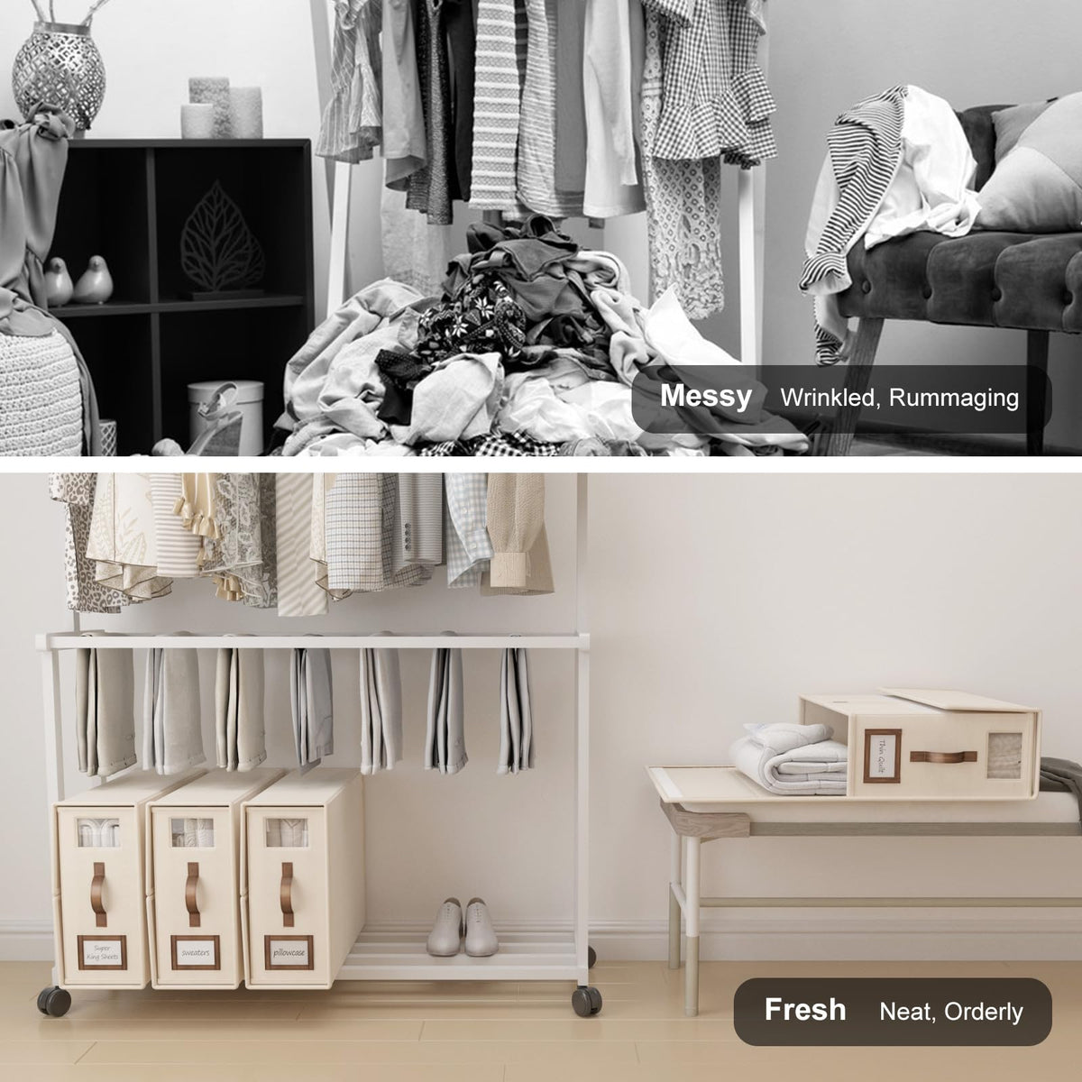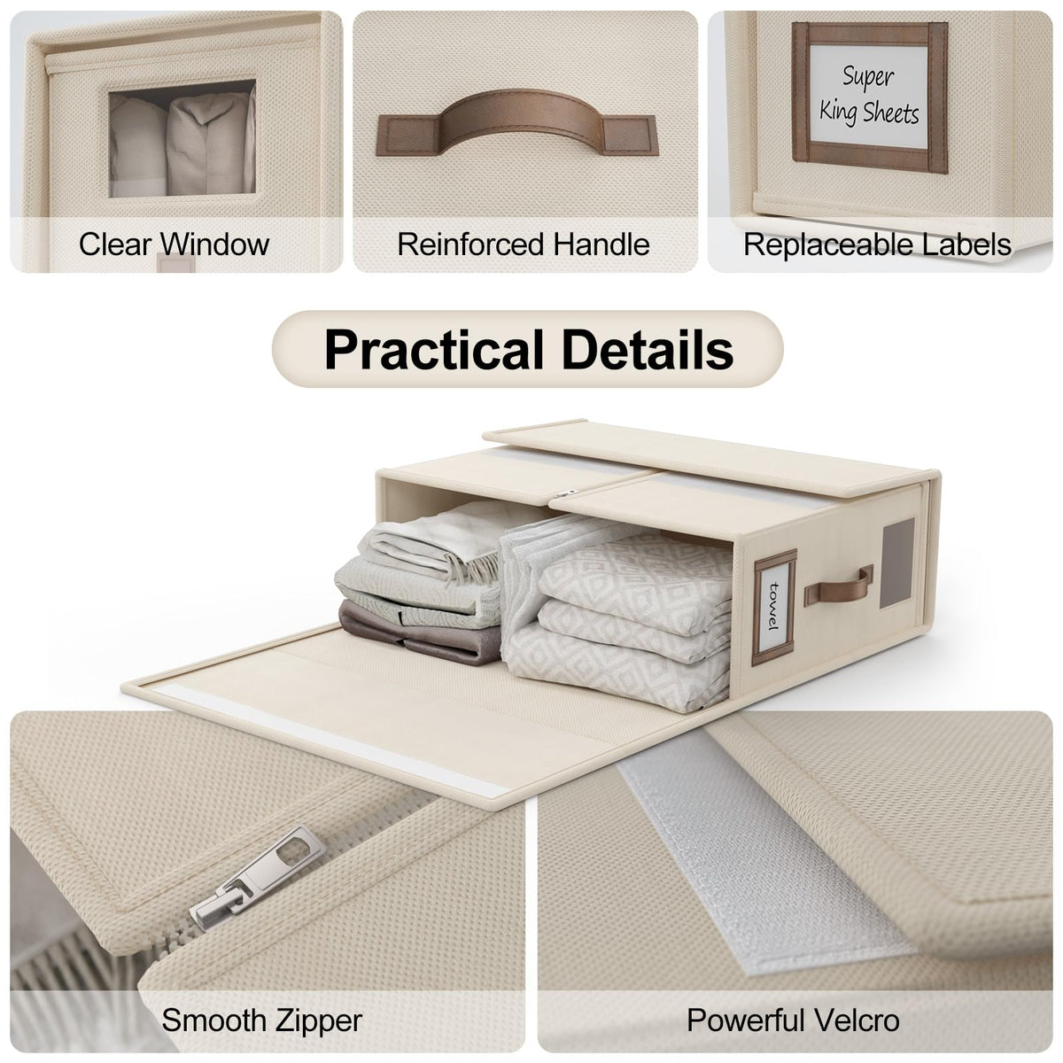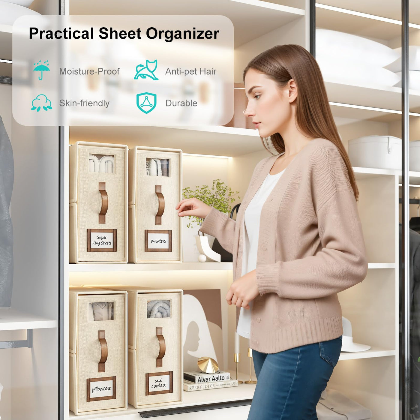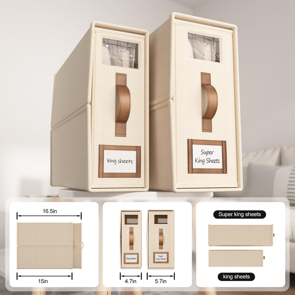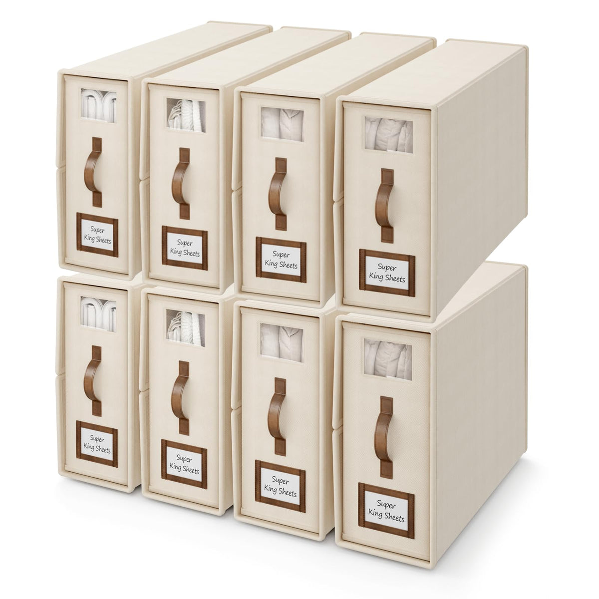 BigPonPon 8 Pack Foldable Bed Sheets Set Organizers and Storage(Cal King Size),Linen Fabric Closet Organizers with Window,Foldin