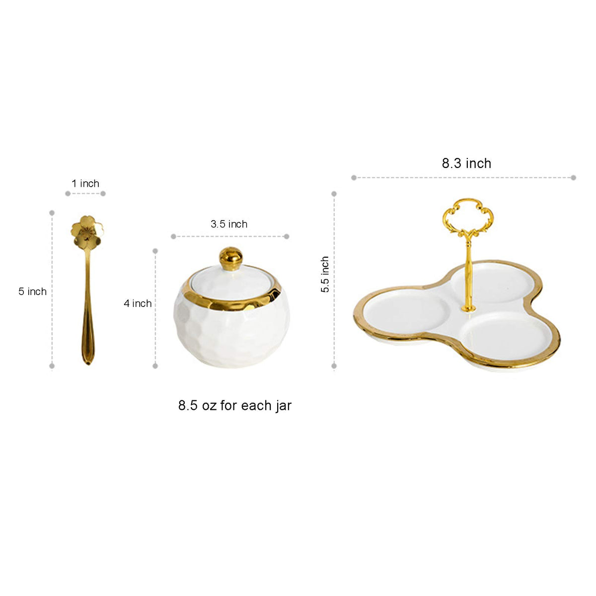 - Q: What colors are available for this sugar bowl set? A: The sugar bowl set is available in a stylish white and gold color combination.
