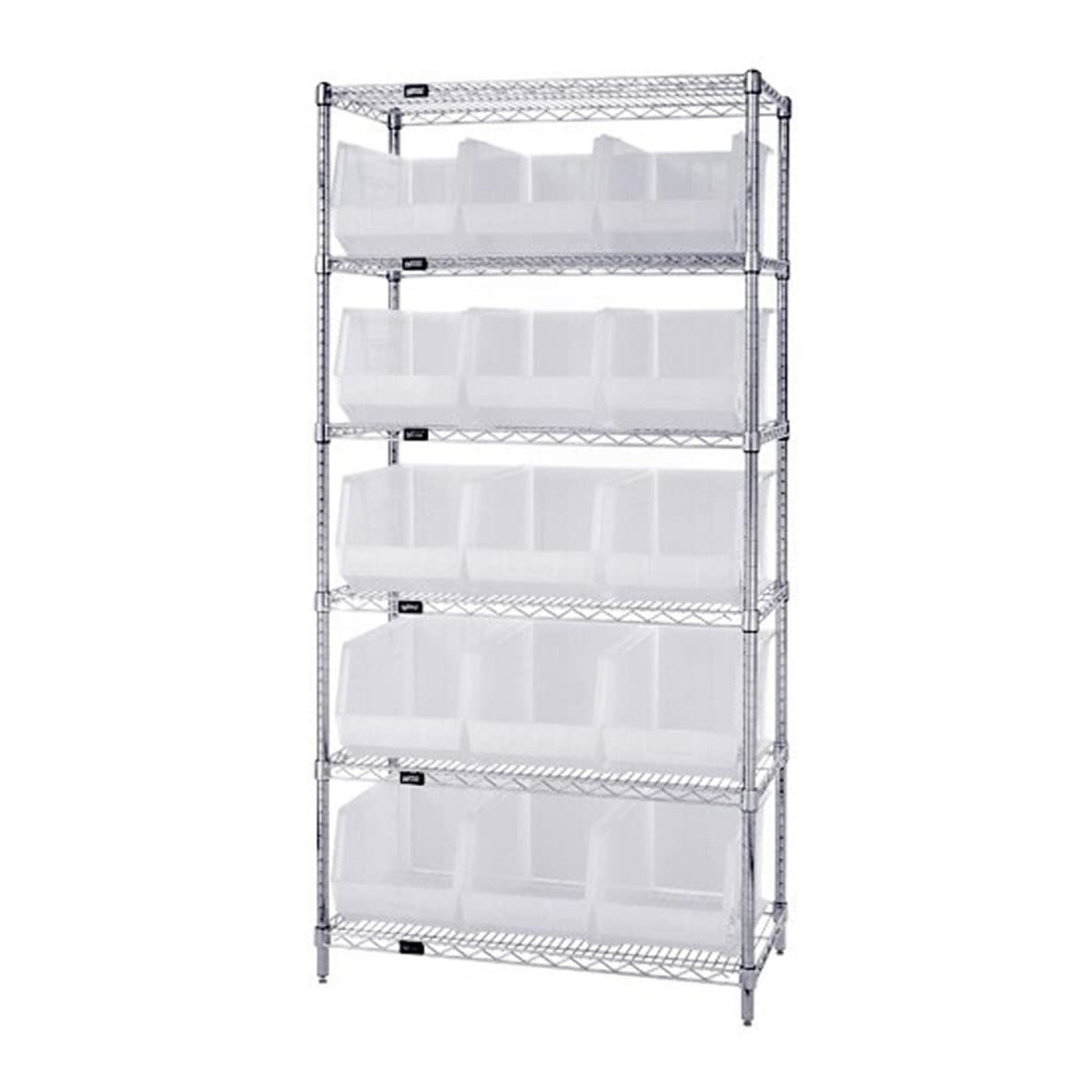 Bin Wire Shelving System, 36L X 18D X 74H, 800 Lbs Load Capacity Per Shelf, Includes: (6) Shelves And (15) Qus260 Green Containe