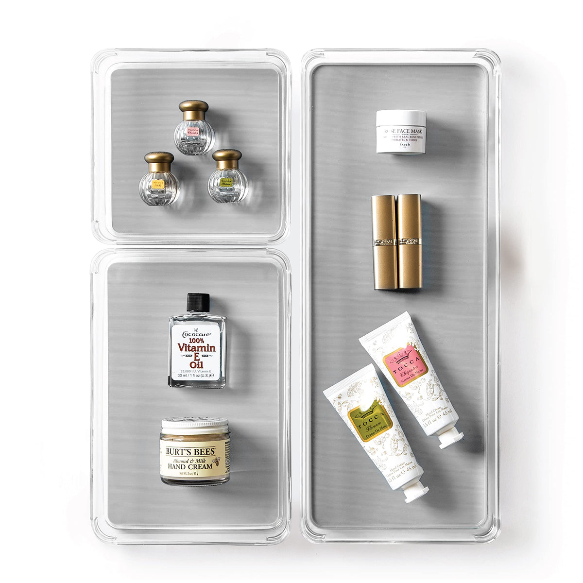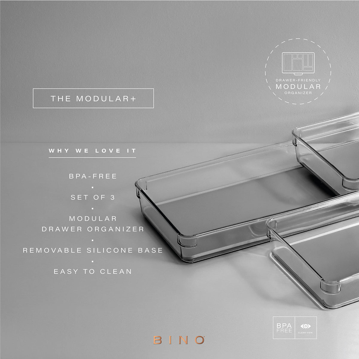 BINO | 3-Piece Drawer Organizer Bin Set - Grey, Large | THE MODULAR+ | Multi-Purpose Storage | Soft-Grip Lining and Non-Slip Rub