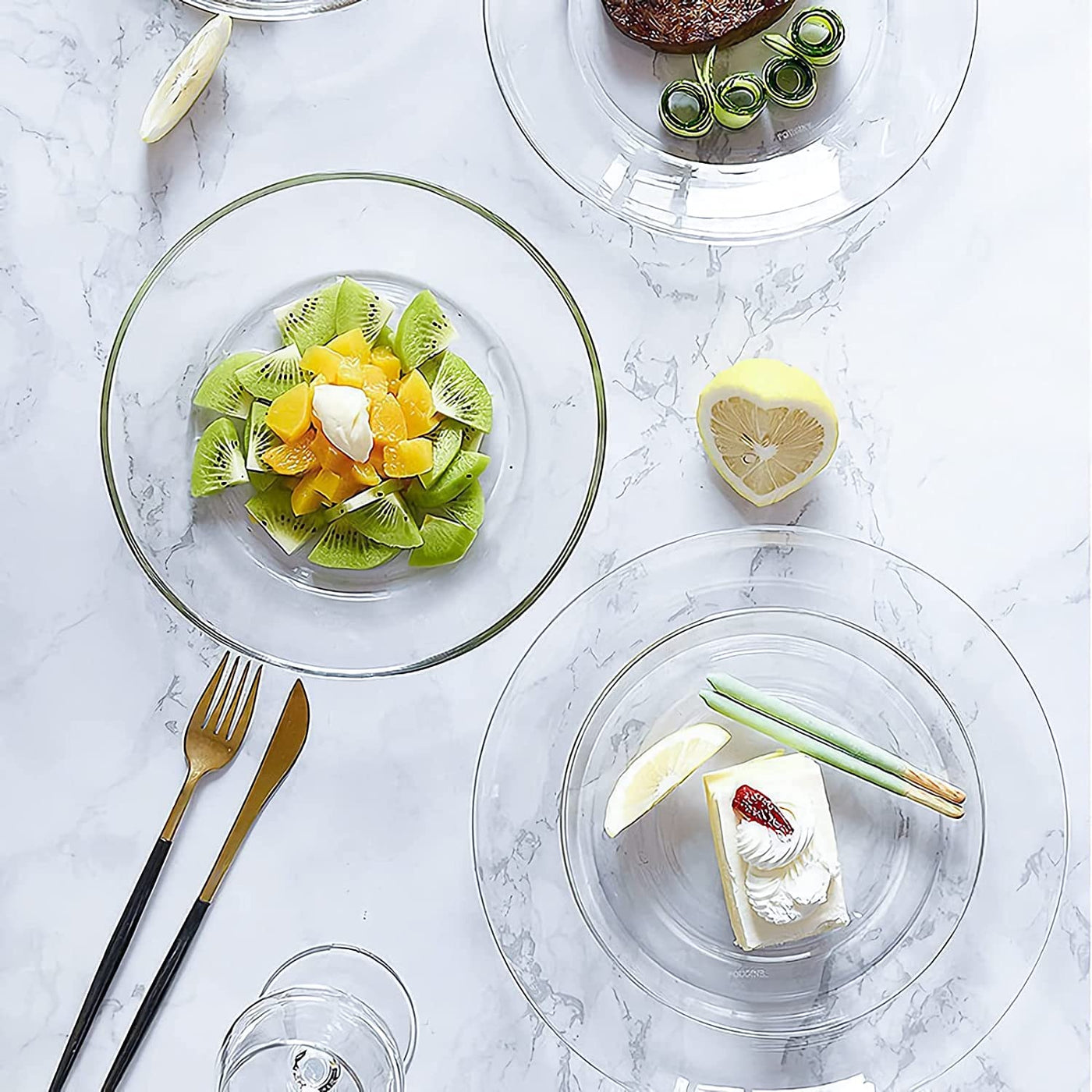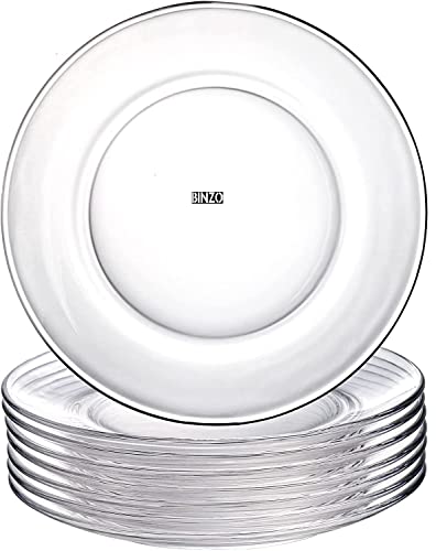 Binzo Glass Dinner Plates, Set Of 6, 10 Inch, Big Full Size Plate For Eating Dinner, Clear, Microwave & Dishwasher Safe, Transpa