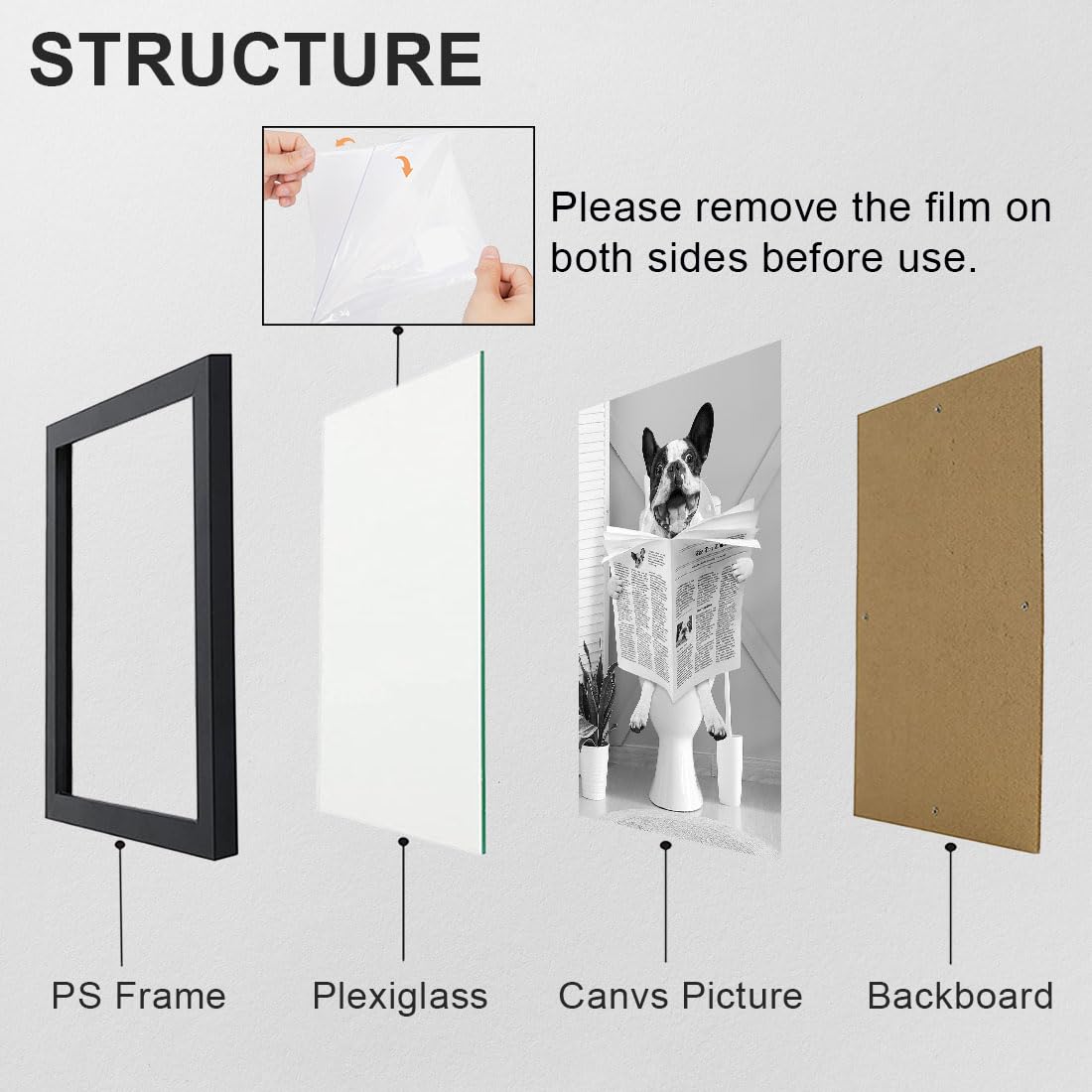 Biufo Wall Art Animal Reading Newspaper Framed Canvas Picture Artwork Dog Poster Decor For Bathroom Living Room (11''X14'')