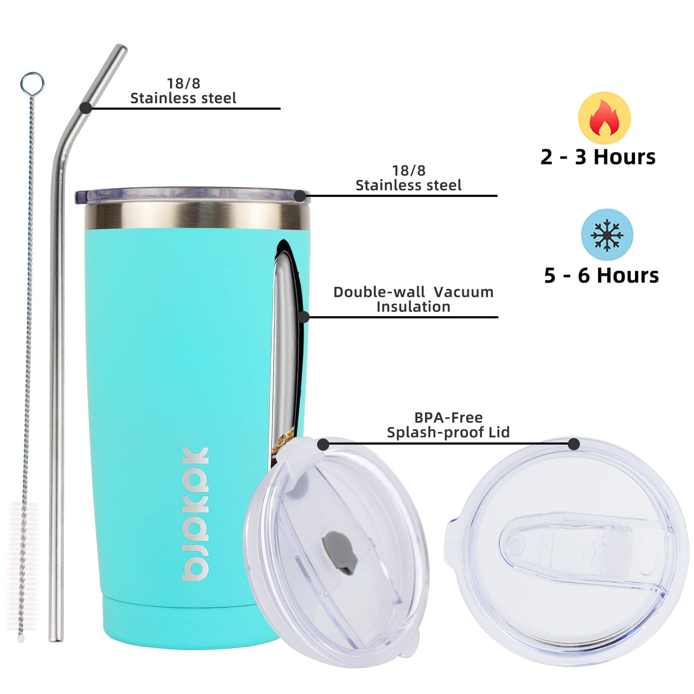Bjpkpk 20 Oz Tumbler With Lid And Straw Stainless Steel Ice Coffee Tumblers Vacuum Insulated Travel Thermal Cup,Turquoise