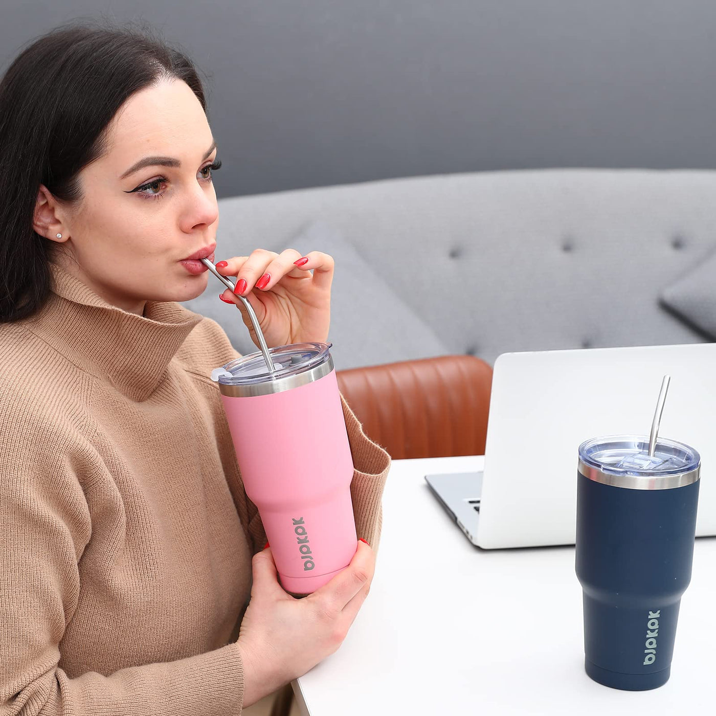 Bjpkpk 30 Oz Stainless Steel Insulated Tumbler With Lid And Straw Reusable Ice Travel Coffee Thermal Tumblers Cup,Brick Red - Va